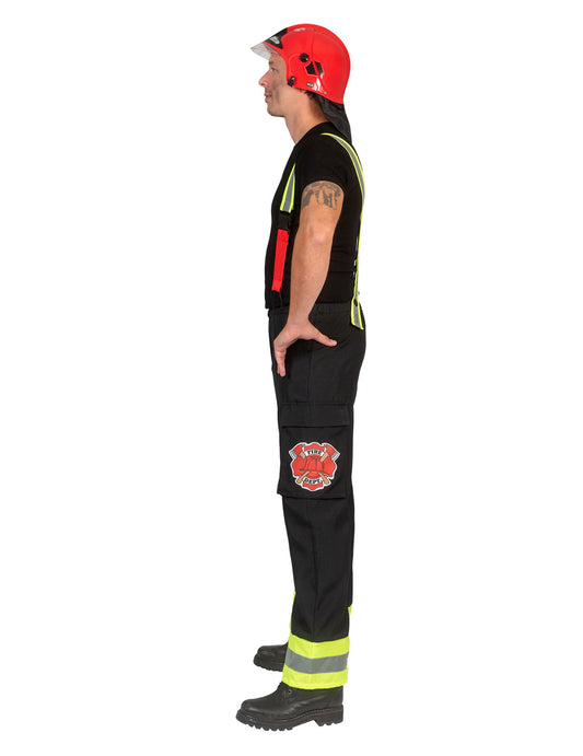 Férfi fekete tűzoltó nadrág nadrágtartóval