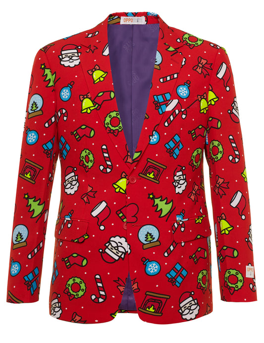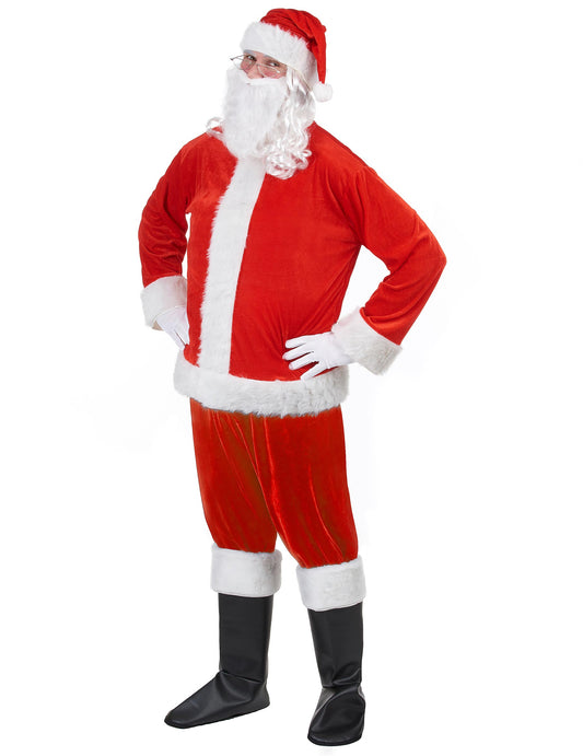 - Mikulás : Klasszikus ruhák piros kabáttal, fekete övvel és ikonikus fehér szakállal.