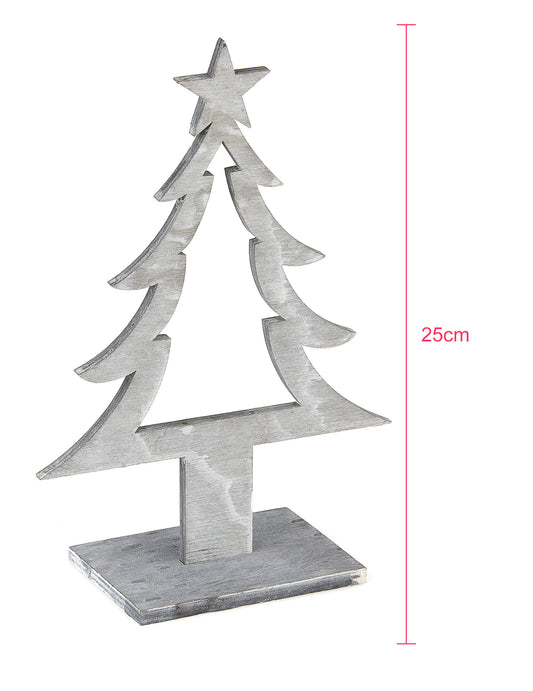 Szürke fa karácsonyfa dekoráció 25 x 11 x 8 cm