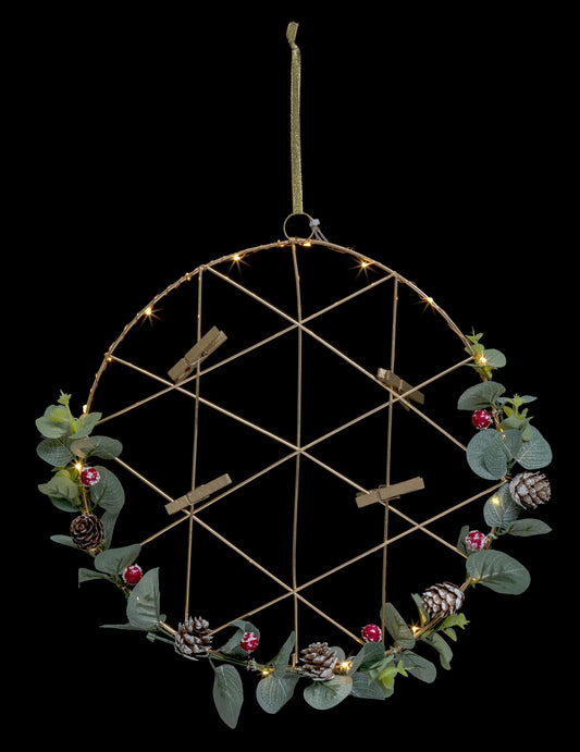 AkcióFüggeszthető, világító kollázs koszorú 28 cm