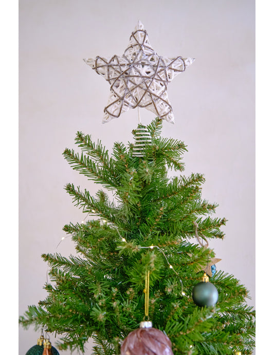 ElfogyottCsillámos csillag alakú rattan karácsonyfa csúcsdísz 20 x 25 cm