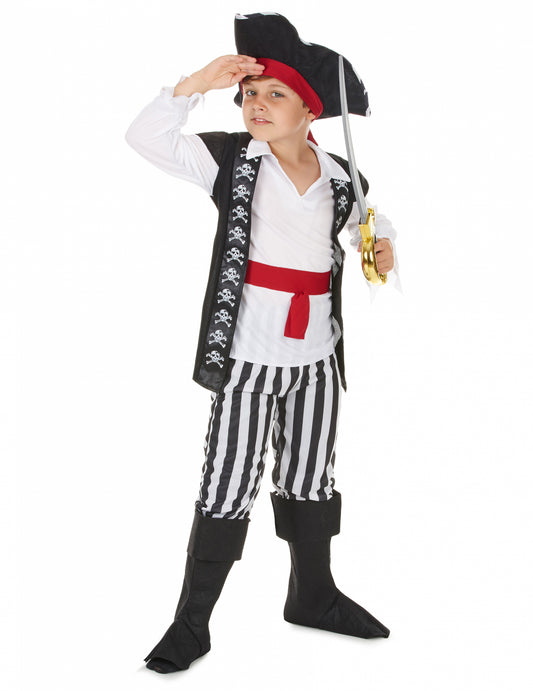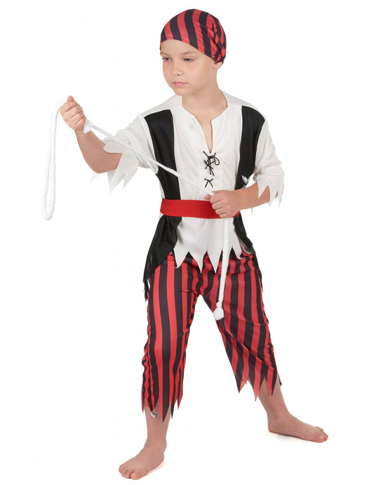 Kalóz álruhában fekete és piros csíkok fiú
