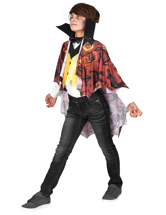 AkcióSárga és piros Halloween vámpír álruhában