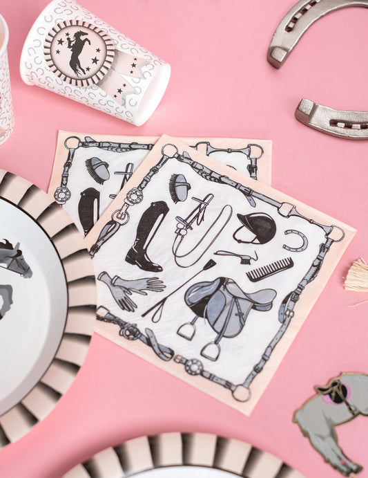 20 lovas témájú papírszalvéta, 33 x 33 cm rózsaszín és szürke