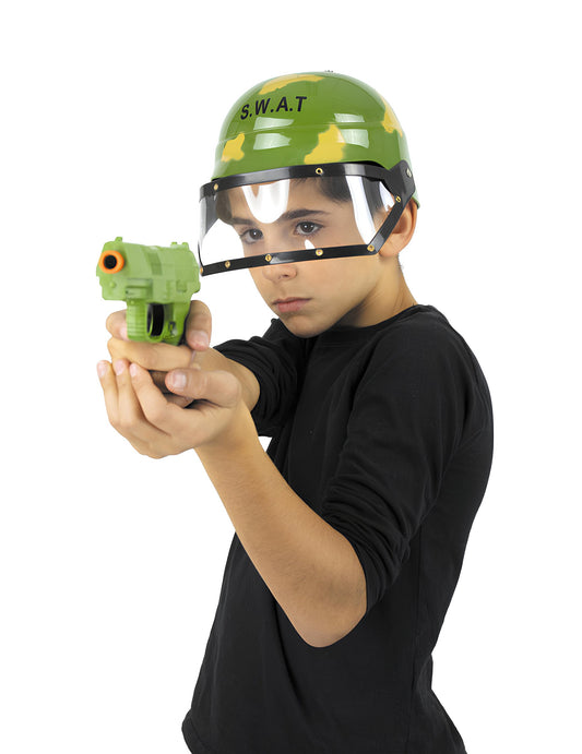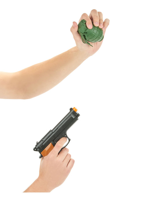 Tartalmazza: 1 sisak, 1 pisztoly, 1 walkie-talkie, 1 gránát