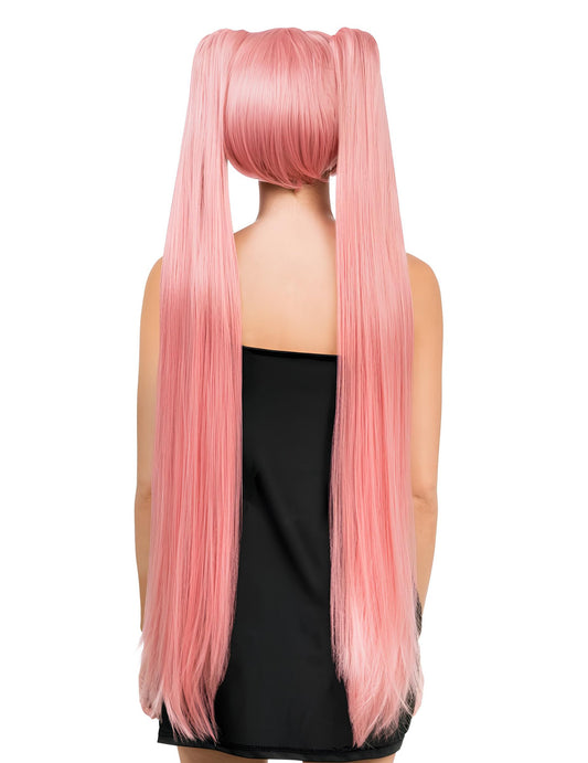 ÚjLuxus cosplay paróka, hosszú, pasztell rózsaszín copfokkal, felnőtteknek