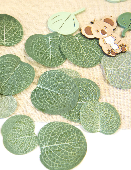Elfogyott40 eukaliptuszlevél konfetti, 2,5-3 cm Természetes esküvői anyag