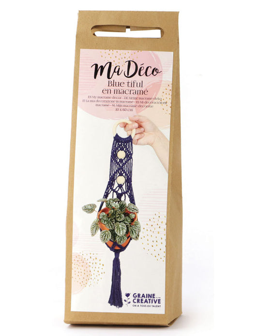 ElfogyottMakramé függőnövény-készlet, kék, 10 x 60 cm cm terrakotta cseréppel