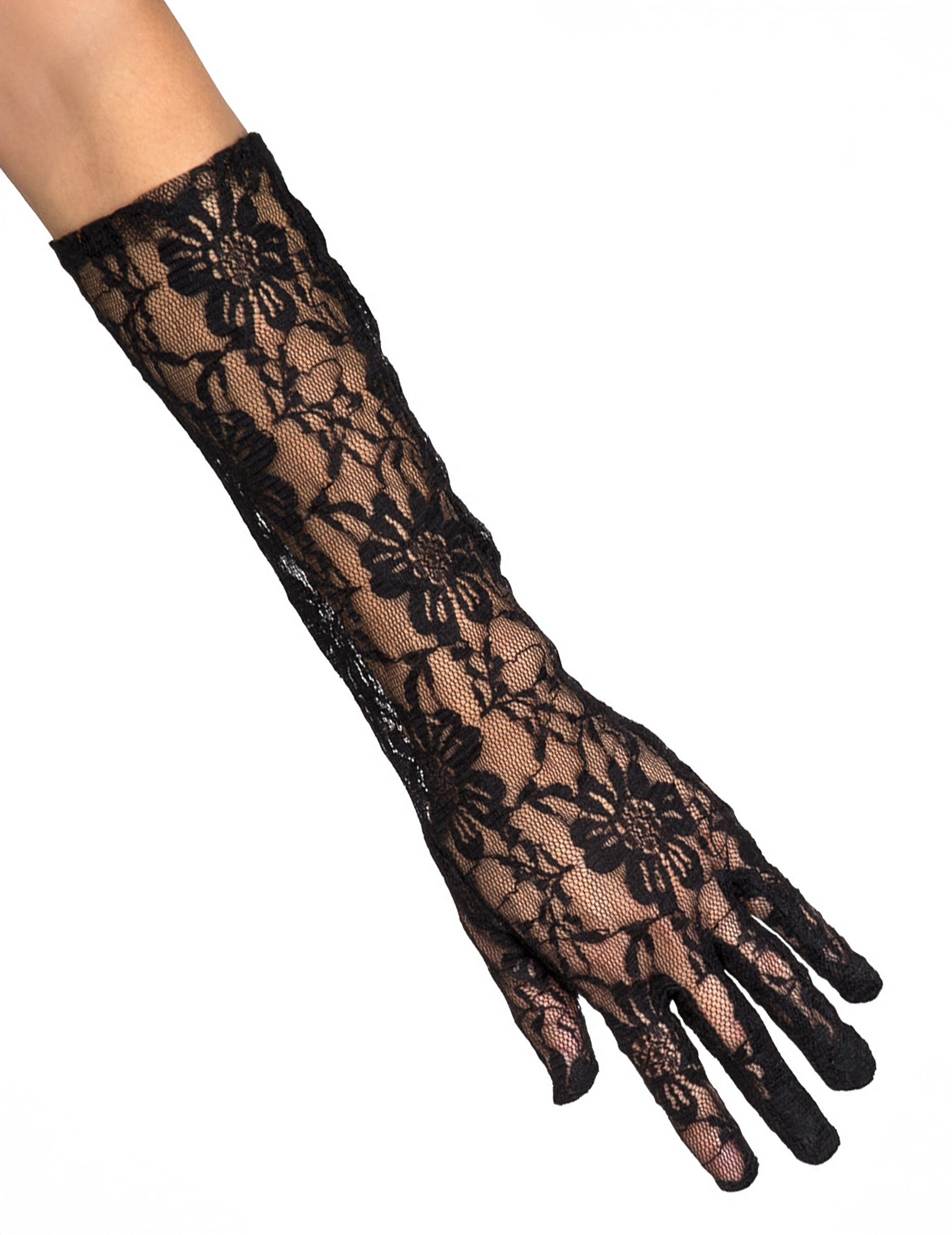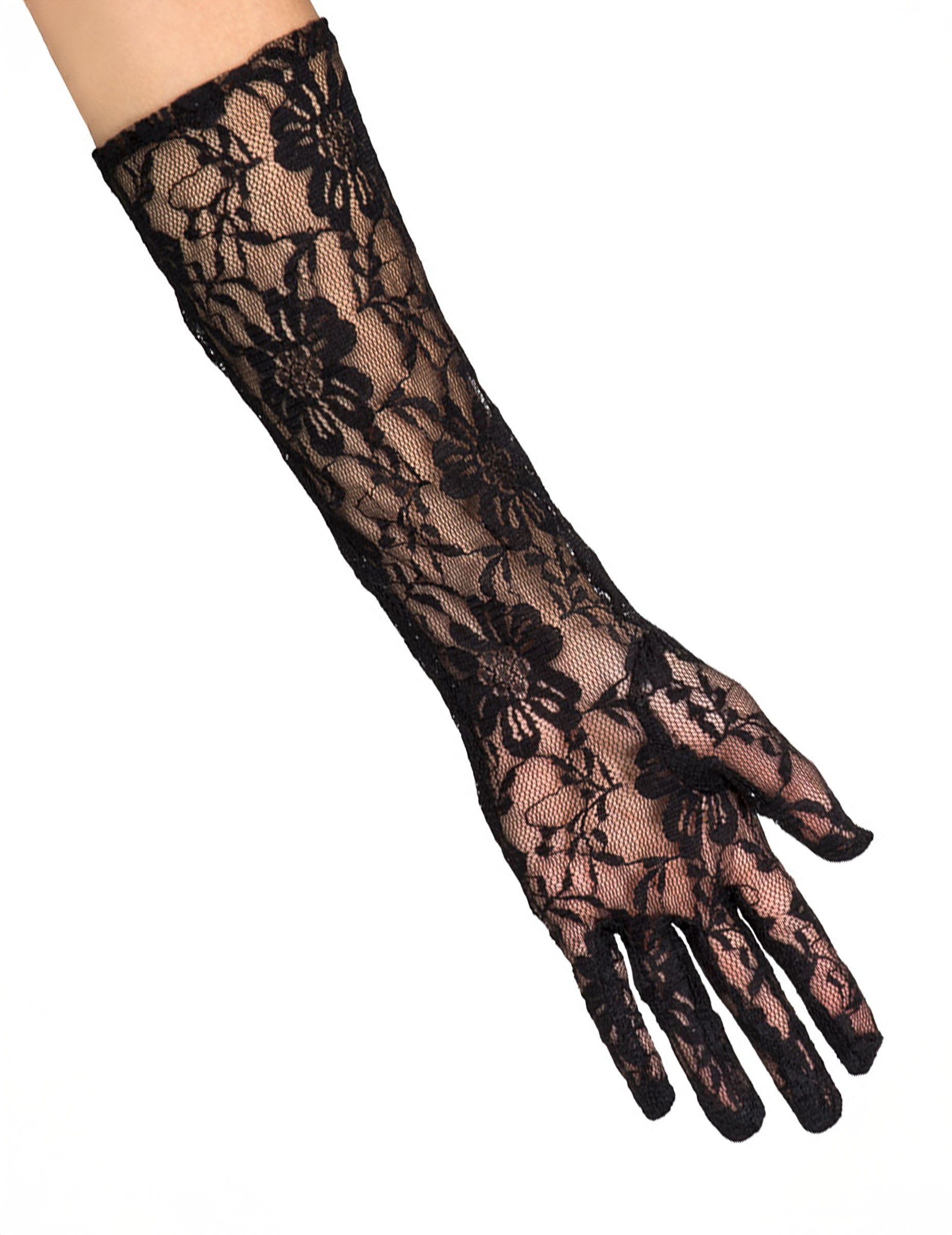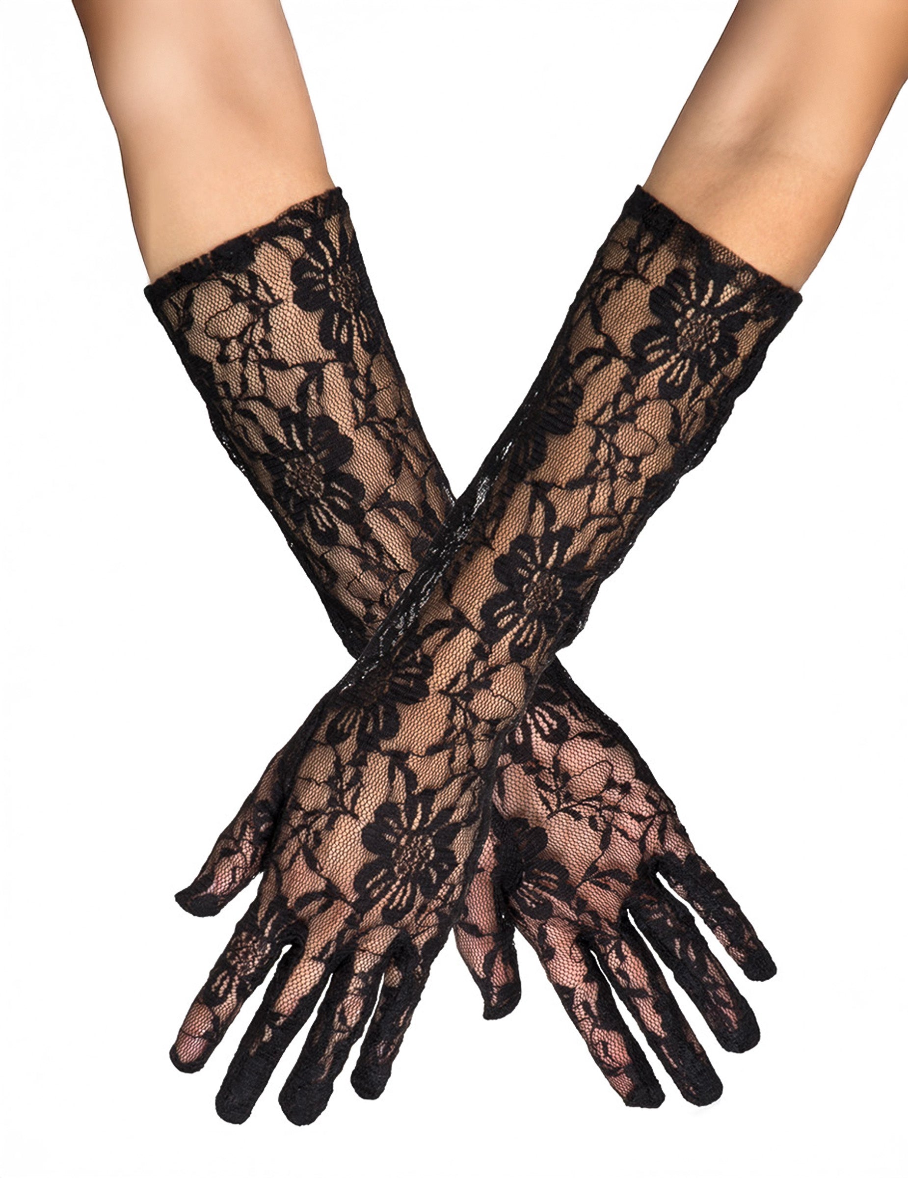 Egy pár fekete csipke kesztyű felnőttek számára.