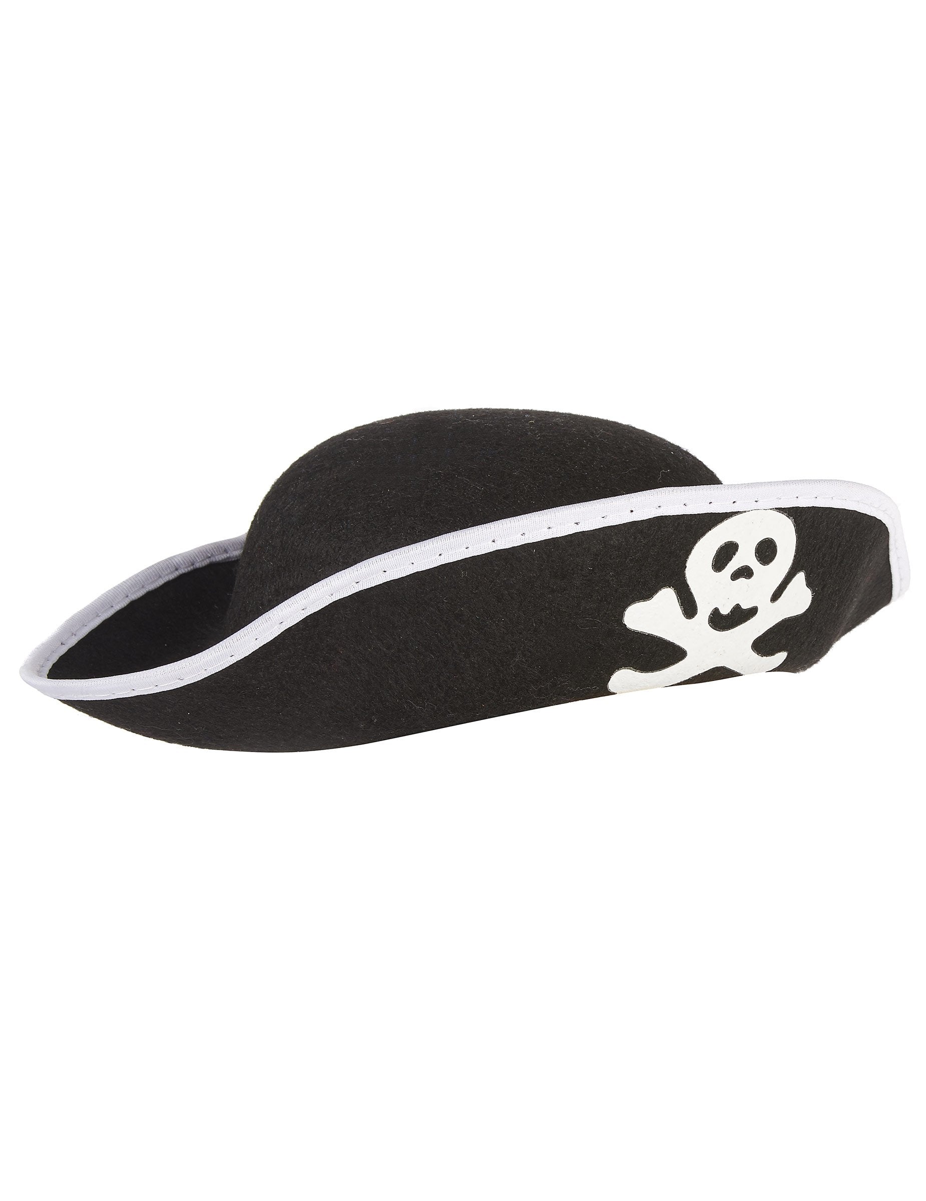Ez kalóz kalap gyerekeknek, fekete színben, díszítve koponya fehér az elején.