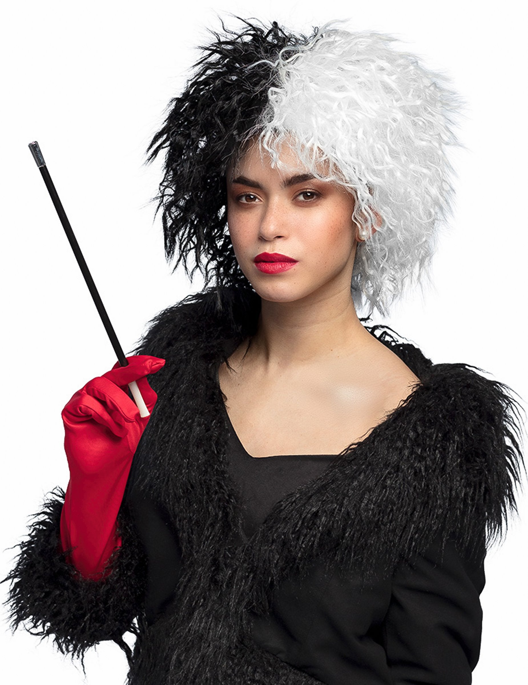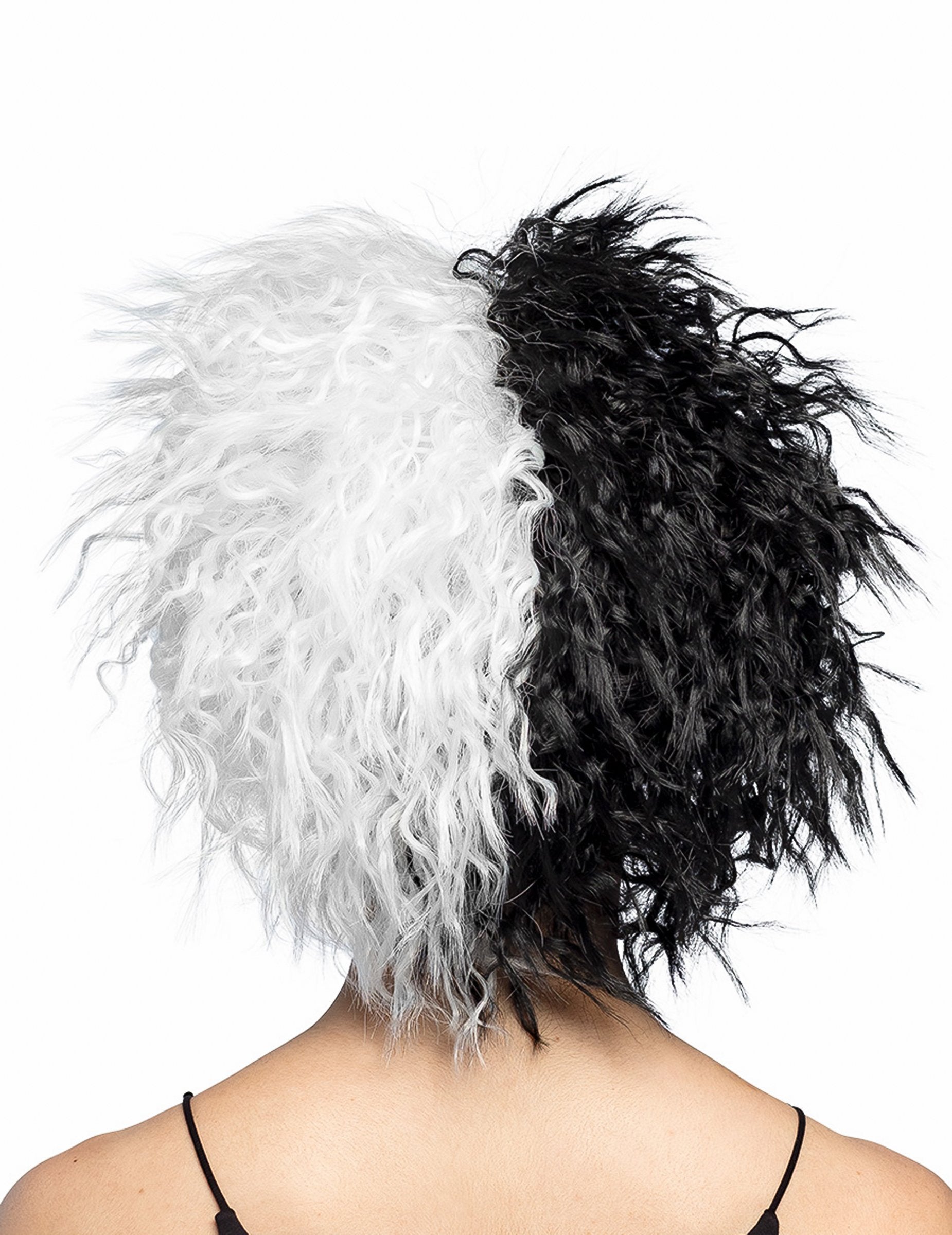 Ez paróka egy kegyetlen nőről Fekete-fehér. Rövid és a göndör hajának köszönhetően dús.