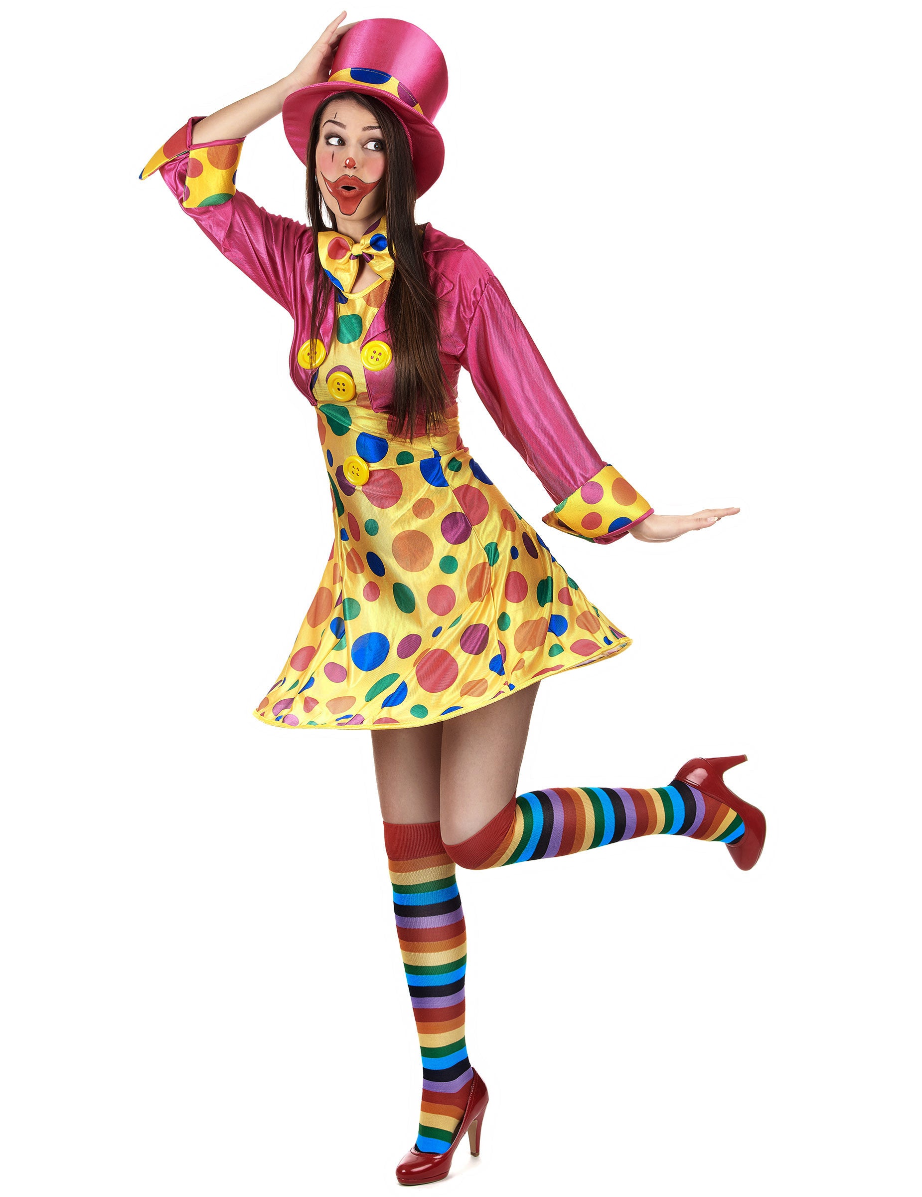 Ez a bohóc művész jelmez a nők számára ruhából, dzsekiből, kalapból és csokornyakkendőből áll (cipő és alsó nem tartozik). Ez a bohóc jelmez ideális lesz az álcázott esték animálásához.