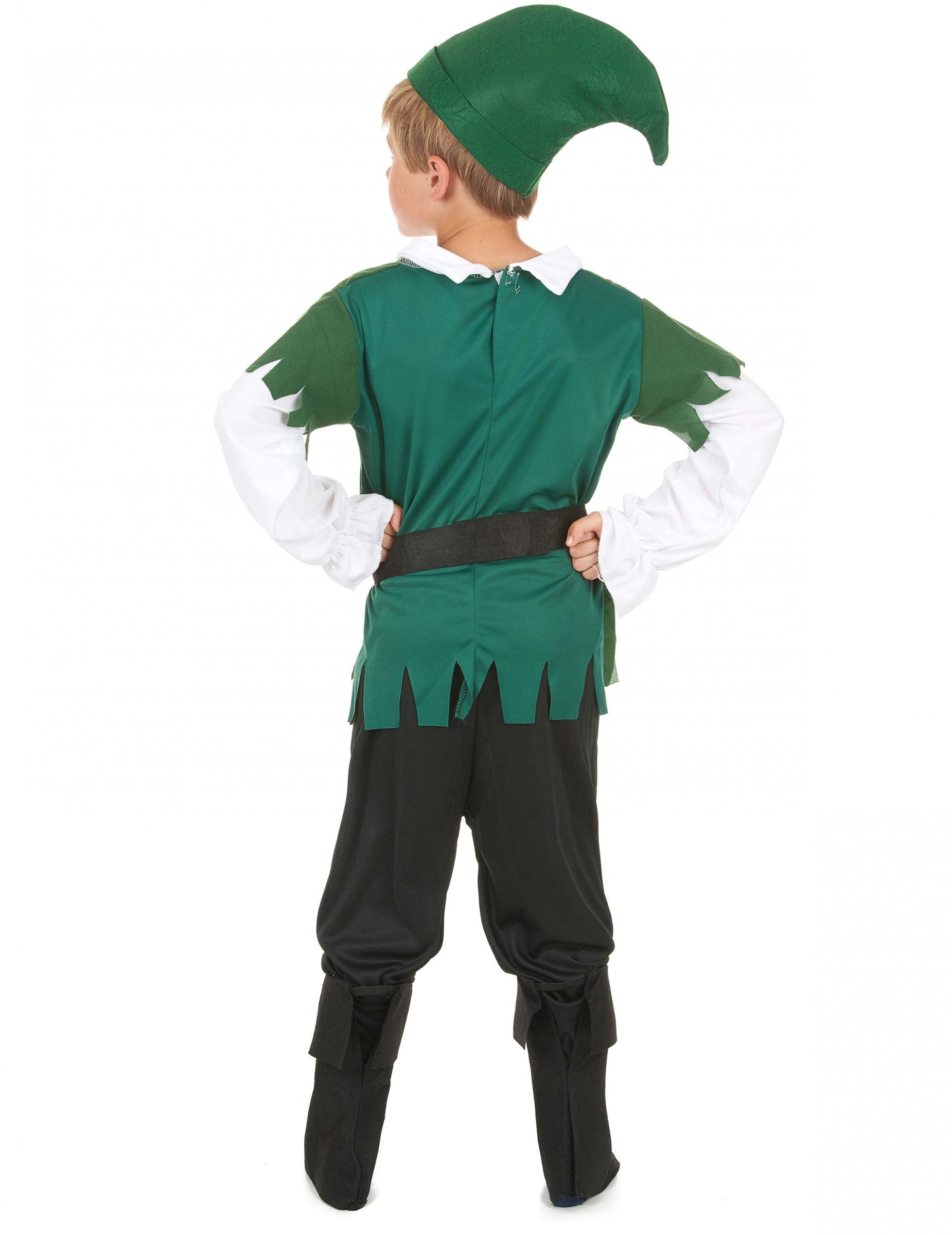 Ez a fa fiú jelmez tartalmaz egy tunikát, nadrágot, egy pár csizmát, egy övet és egy kalapot (nem tartalmazza a fegyvert). A tunika zöld, az ujjak résekre vágva. Egy fehér ing integrálódik a tunikába. A tetején hamis arany kötés van nyomtatva. Az öv fekete, arany műanyag hurokkal, és karcolással van rögzítve. A nadrág fekete, rugalmas derékkal, egy pár fekete out-varrással, vastag filcen. A kalap zöld filcből készül. Ez a csinos álruhás a kis imádnivaló kisfiúját a fafiúból születésnapi snack alatt vagy a karneválra készíti.