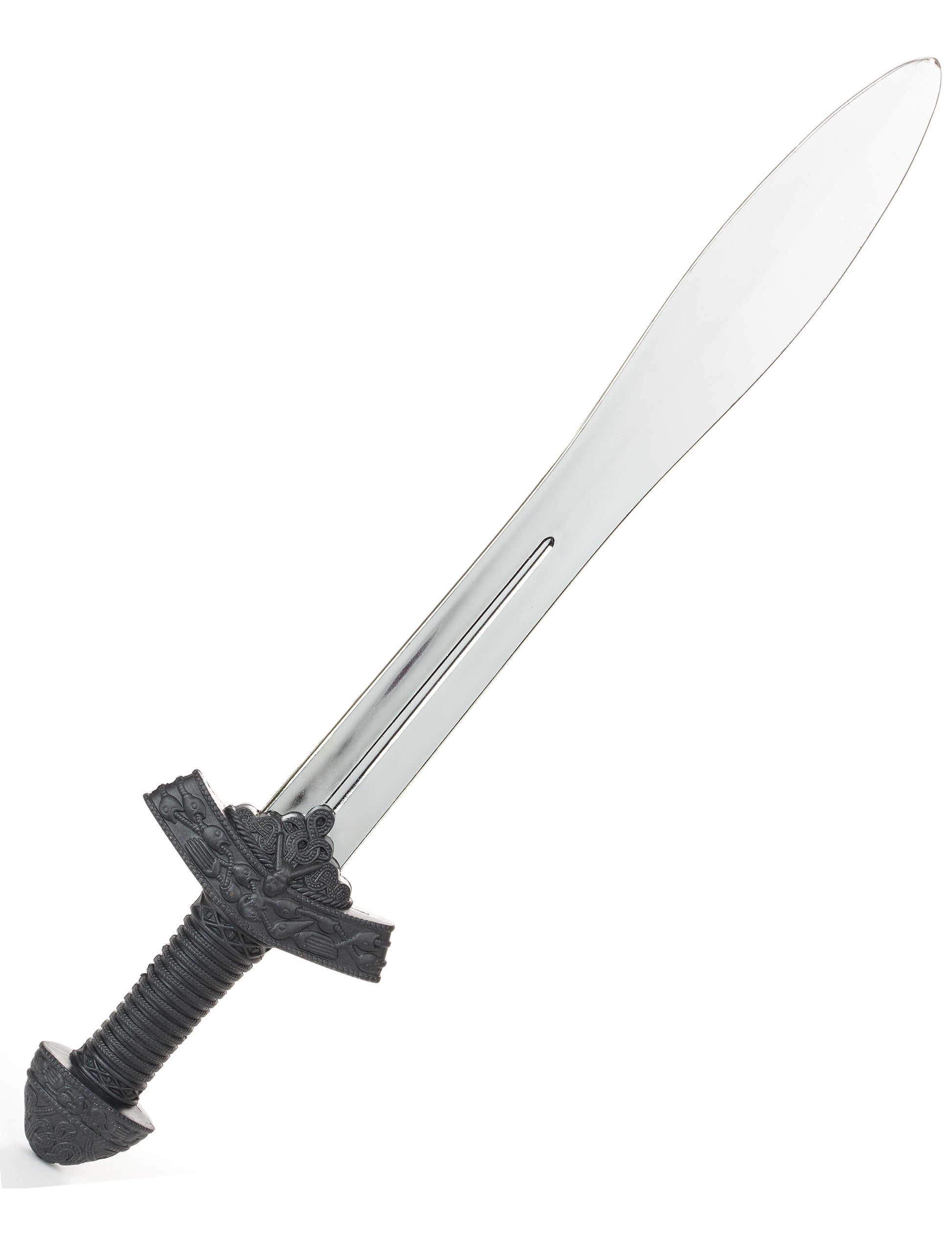 Ez a középkori kard a gyermekek számára műanyag. Van egy fekete fogantyú, dombormű mintákkal. A penge szürke a maximális realizmus érdekében. Körülbelül 56 cm -t mér. Ezzel a karddal, hogy kitöltse álruháját, középkori lovagot testesít meg egy középkori, karneváli fesztivál vagy más középkori esték számára.