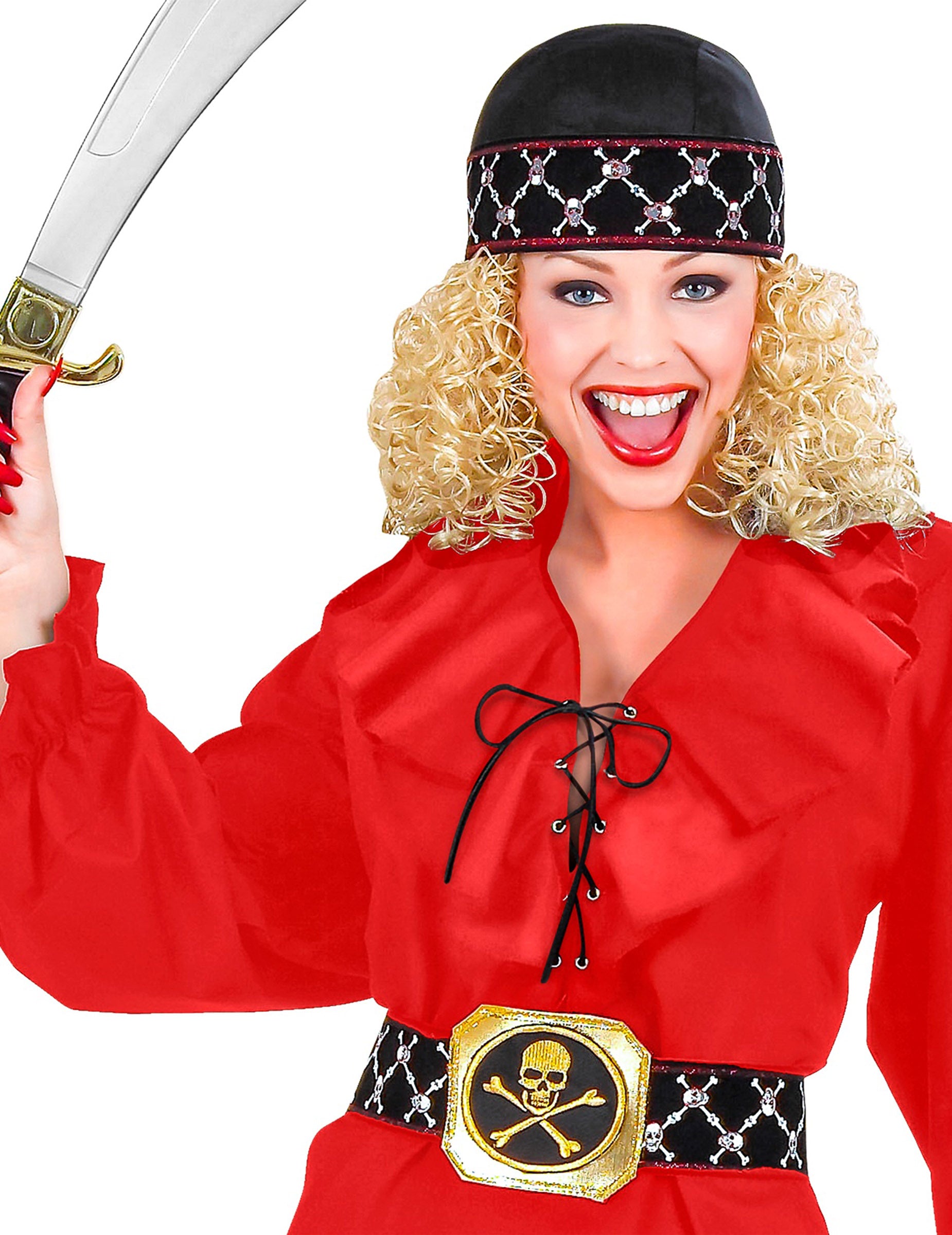 Ennek a kalózfekete övnek egy arany hembroider koponya, szövet. Körülbelül 208 cm hosszúságú. Egy méret, felnőttek számára. Copyright Widmann SRL. Copyright Widmann SRL