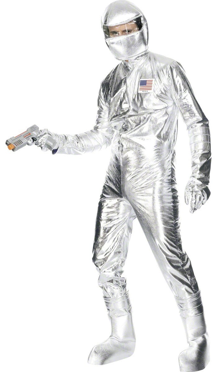 Ezüst színű űrhajós férfi jelmez, amely tartalmazza az overallt kapucnival, a kesztyűket és a cipőket (a pisztoly nem tartozék). Ideális jelmez beöltözős bulikhoz.