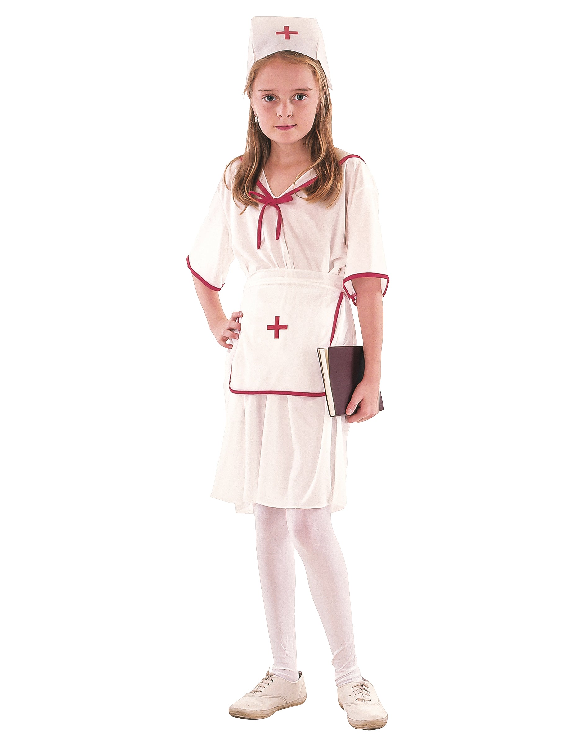 Ez a lányoknak szánt ápolónő jelmez tartalmaz egy fehér, piros szegélyű ruhát, egy kis piros kereszttel ellátott kötényt és egy hozzá illő sapkát (a kiegészítők, harisnyanadrág és cipő nem tartozék). Ez a ápolónő jelmez tökéletes karneválra vagy bármilyen jelmezes eseményre.