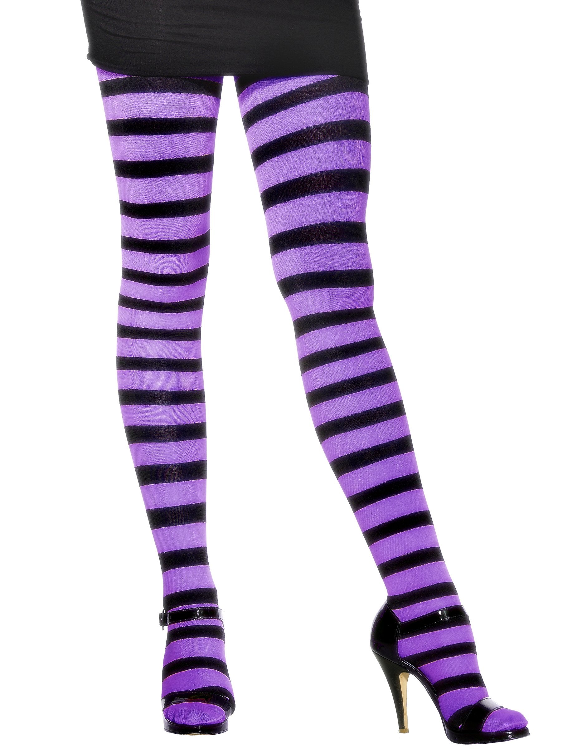 Ibolya és fekete Halloween érett harisnya egy méretben lévő felnőttek számára. Ideális a boszorkány jelmezének kitöltéséhez egy show vagy a Halloween számára. Copyright Widmann SRL