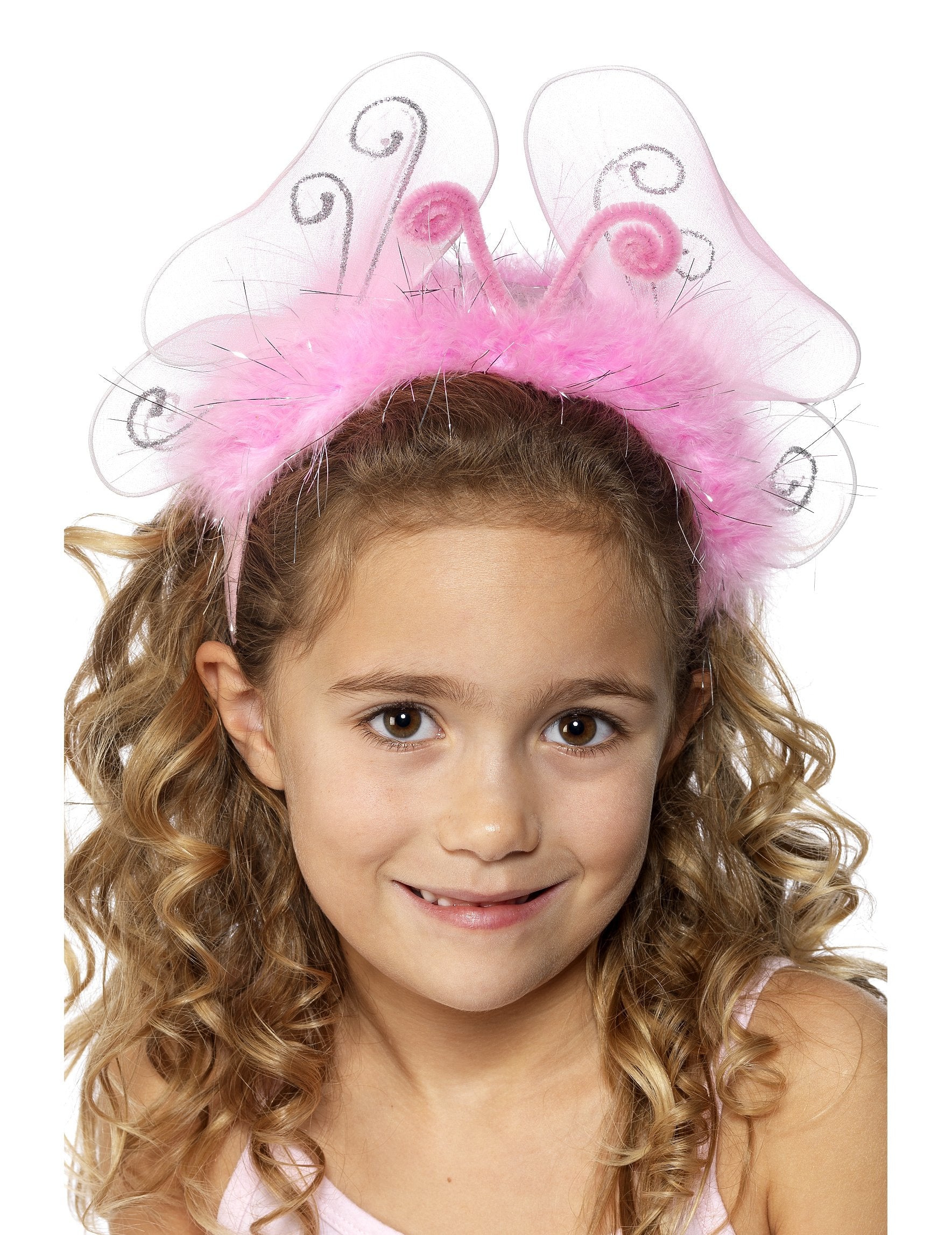 Ez a rózsaszín pillangó fej üvegház szintetikus tollban található. Két kicsi antenna és szárnya van.