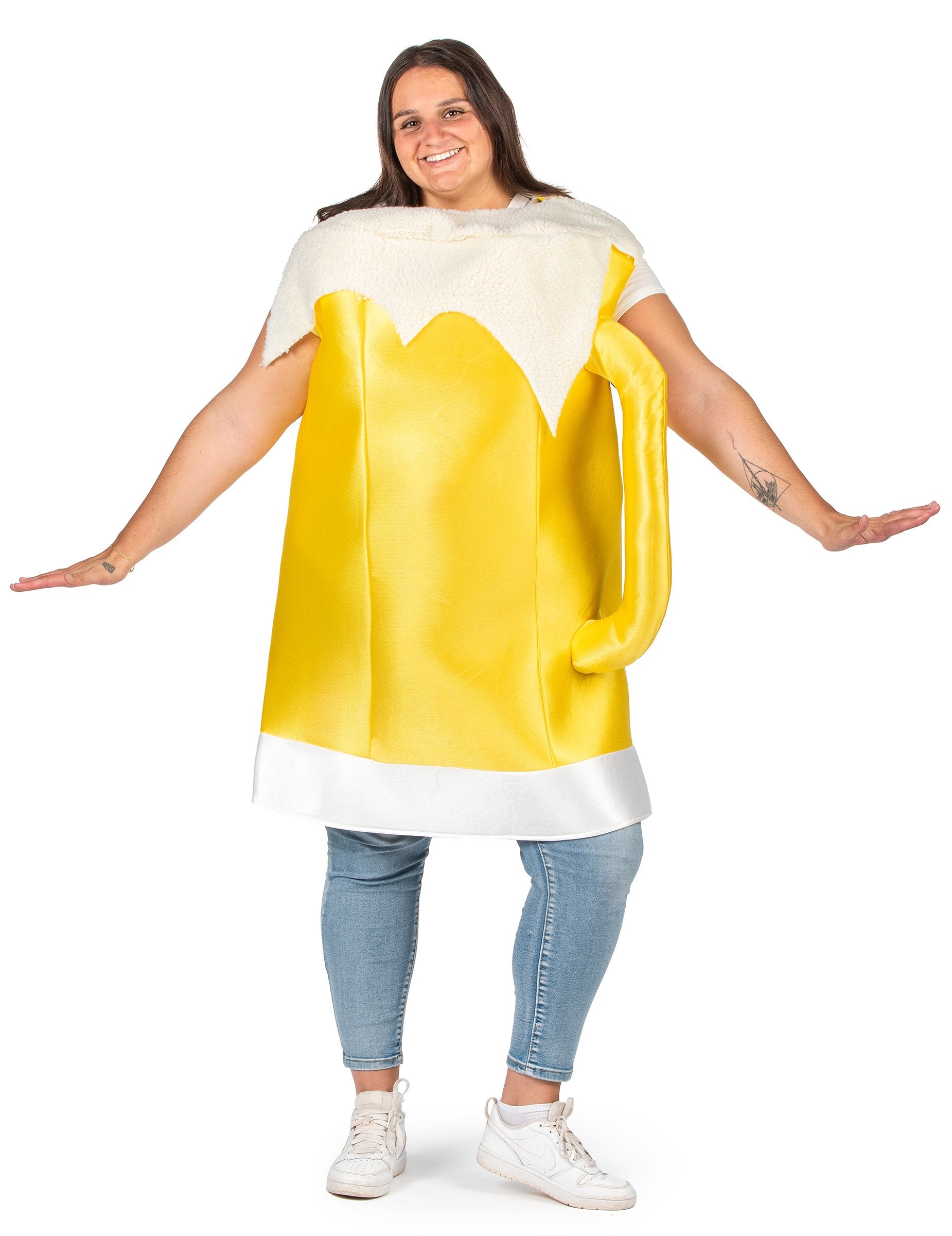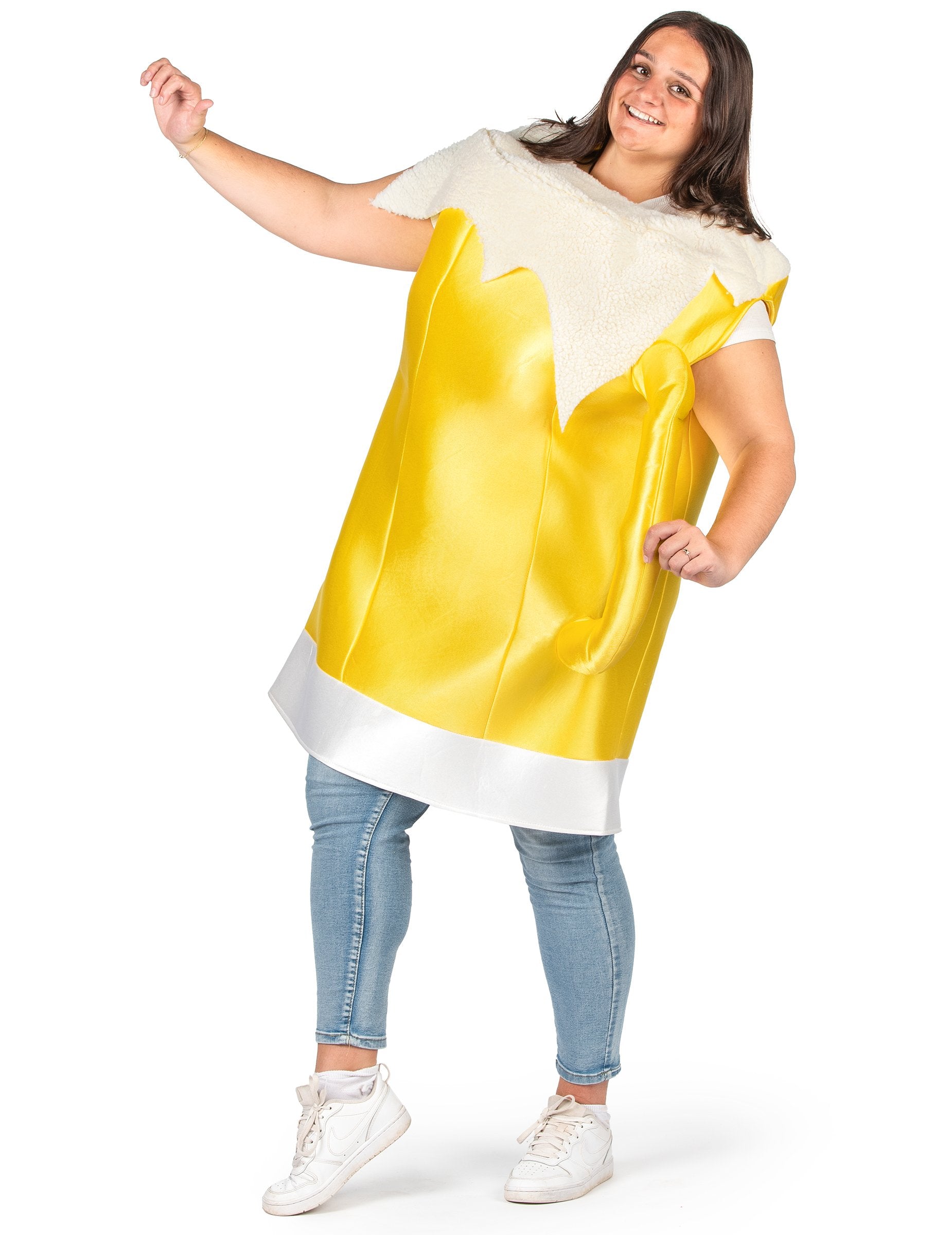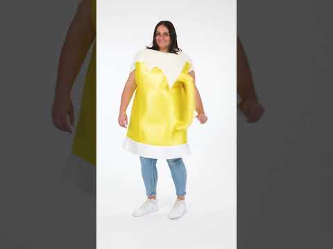 Nagyon vicces sörbögre jelmez felnőtteknek. Ez a sárga és fehér jelmez magában foglalja a felső testet borító puha hab -tunikát, és egy bajor sör bögrét ábrázol, amelynek oldalán van a fogantyú, és a tetején a hab. Vidám jelmez, amelyet védőcsomagolásban szállítanak. Ideális egy témájú este a barátokkal, Oktoberfest vagy Oktoberfest.