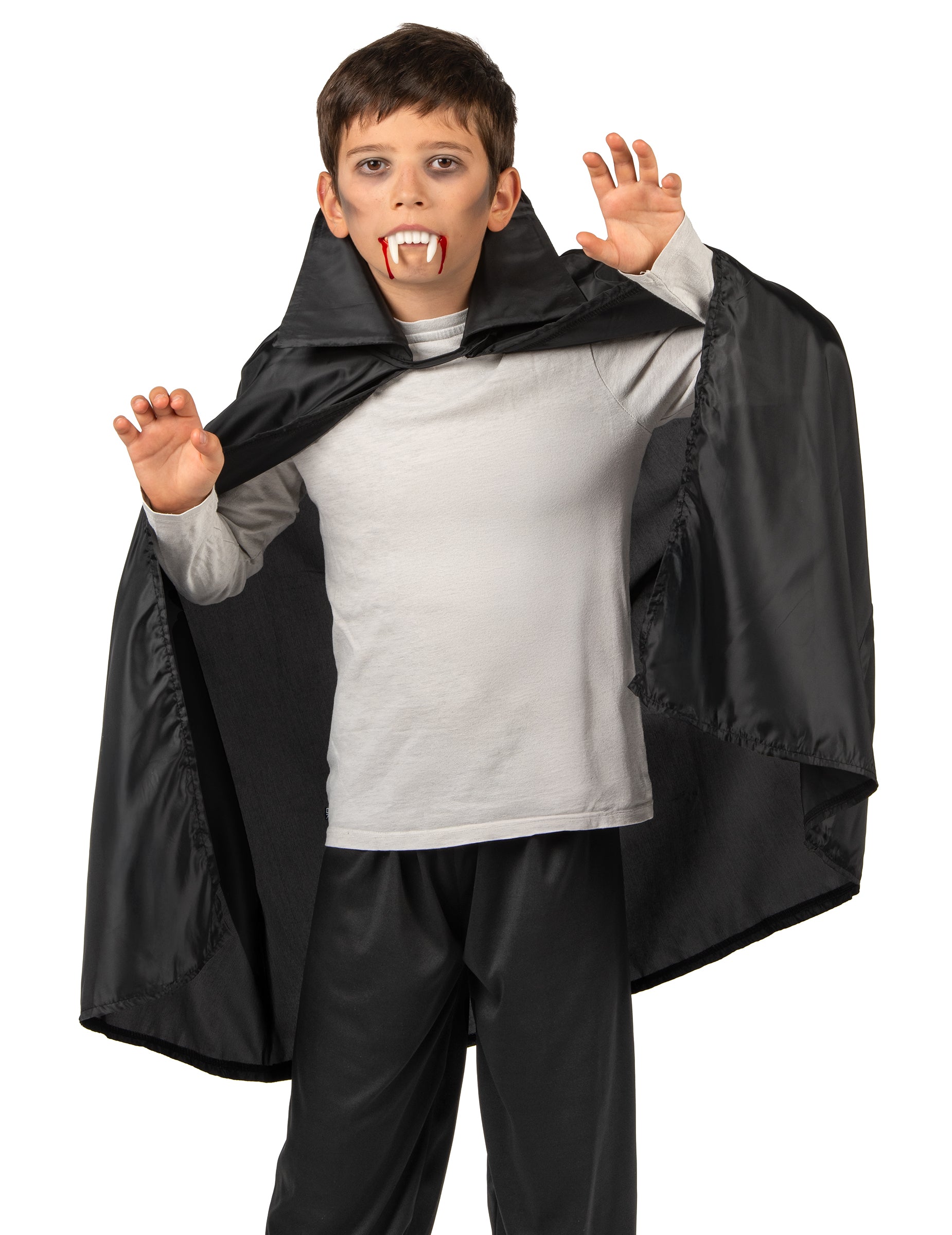 Ez a hosszú fekete vámpír köpeny gyermekeknek szól. Van egy nagy átadása, és 2 húrral elölre csatlakoztatható (csak a köpenyt tartalmazza). Ez a kiegészítő ideális lesz a vámpír jelmez kitöltéséhez a Halloween estén.
