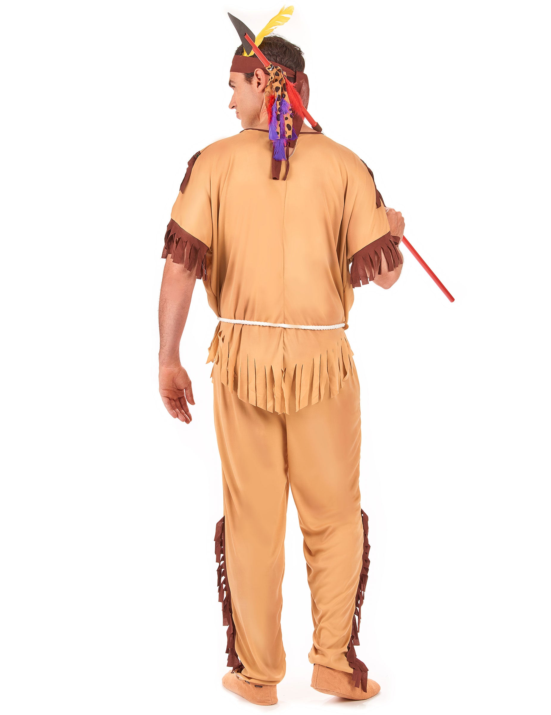 Ez az indiai jelmez férfiak számára készült, és pólót, nadrágot, fejpántot és övet tartalmaz (Lance és cipő nem tartalmaz). A rövid ujjú póló bézs, sötétbarna rojtokkal. A póló alját bézs rojtokkal is ellátják. A méretét egy fehér zsinórral meg lehet ívelni, amely az övszerepet tölti be. A nadrág hosszú, rugalmas méretű és alsó bézs rojtokkal díszítve. Végül a homlokát csodálatosan díszítik egy toll szalaghirdetéssel. Legyen a tökéletes Apache a karnevál alkalmával vagy egy jelmezes estére!