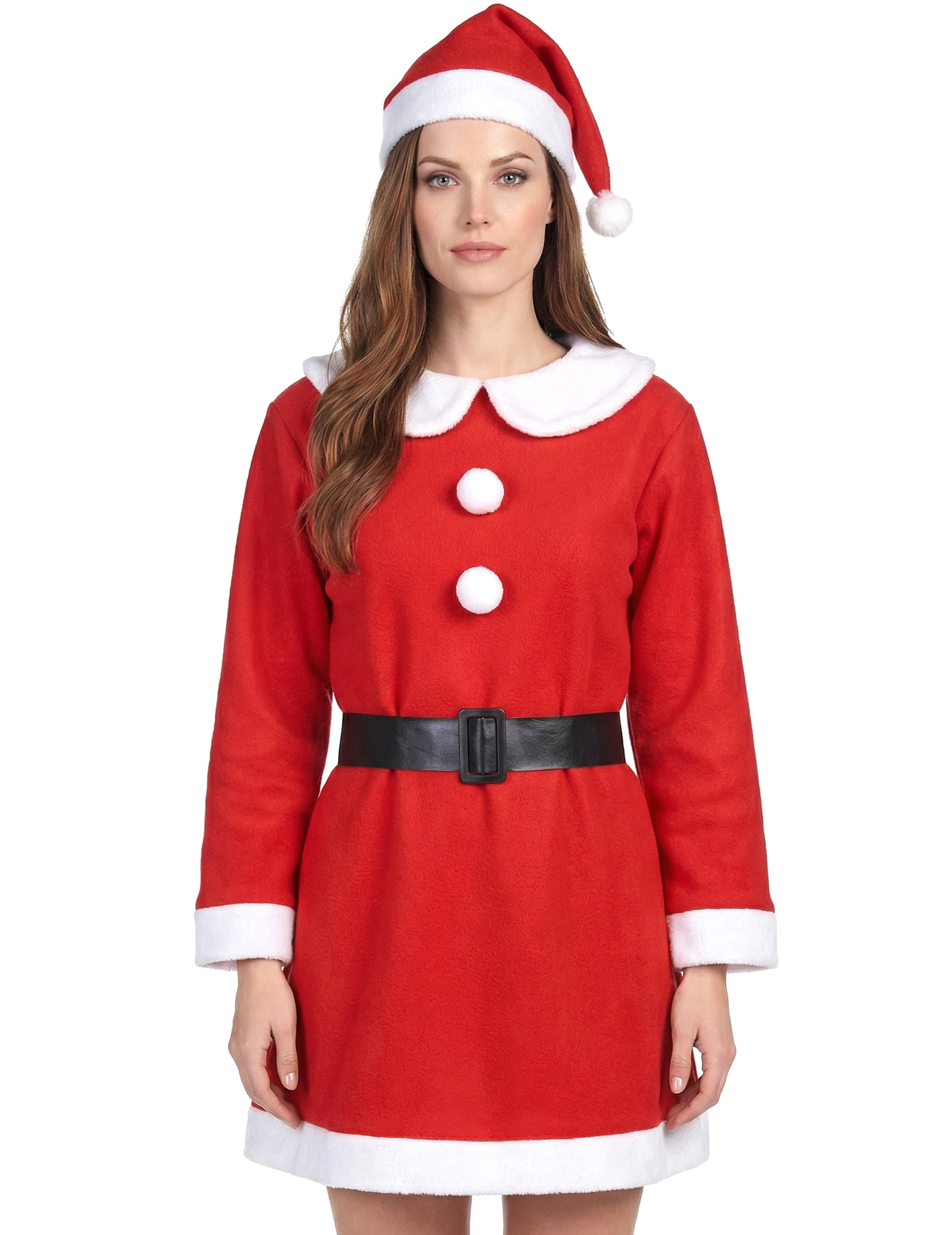 Ez Női Mikulás jelmez egy ruhából, egy övből és egy főkötőből áll.
