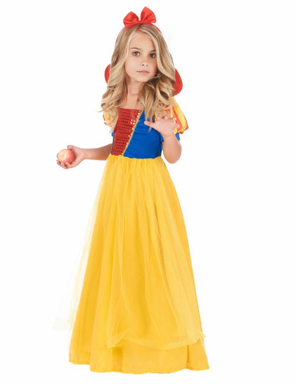 Egy kis mesebeli hercegnőnek ez a álruhája egy piros csomó fejpántból és egy hosszú ruhából áll, puffadt mandzsettával, nagy vastaggallérral, fátyol az alján és a piros flitterrel. Ez a jelmez ideális ahhoz, hogy gyermeke képes legyen megtestesíteni a legszebb hercegnőket a karneváli, a tisztességes vagy más ünnepi pillanat alatt.