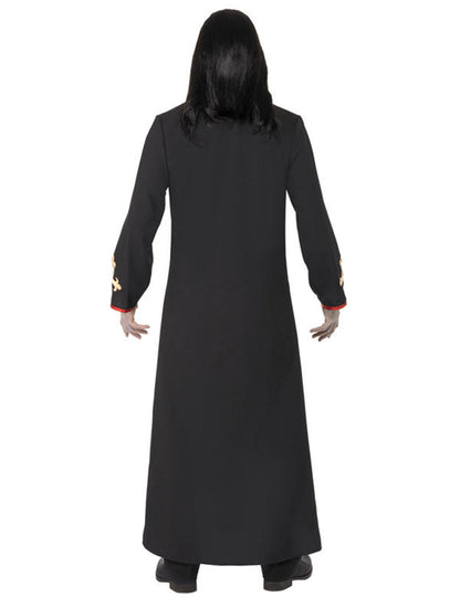 Ez a pap álruhában egy olyan ruhából áll, amelynek alsó és a mandzsetta keret alakú nyomtatványai vannak. Nyolc aranygombot varrnak a nyakától a derékig. Epaulettes is (paróka és medál nem tartalmazza). Ez a jelmez ideális lesz Halloween vagy bármely más téma eseményhez.