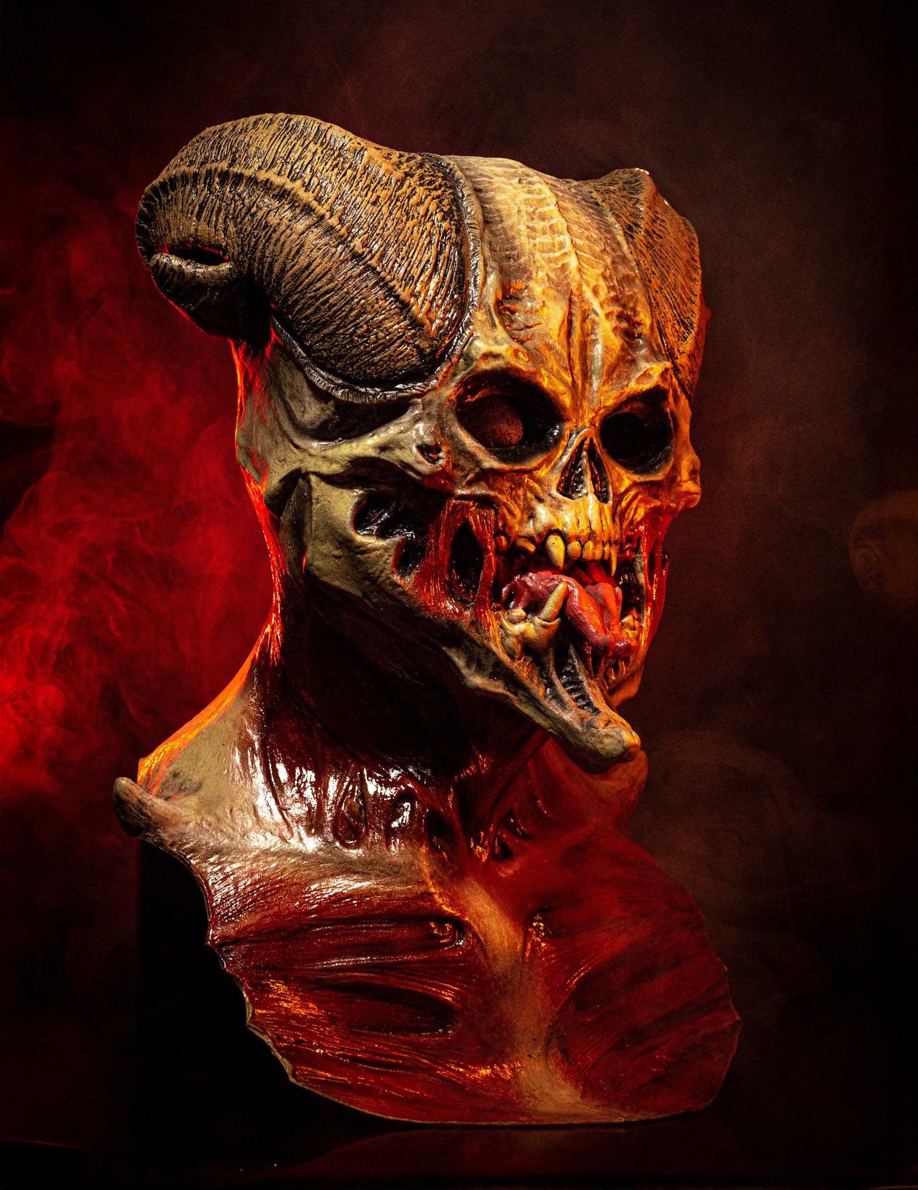 Ez a latex teljes maszk egy ördög koponyáját képviseli, amelynek véres csontvázhatása van a mellkason. Ez a kézzel festett tartozék ideális az álruhájának kitöltéséhez a Halloween estén.