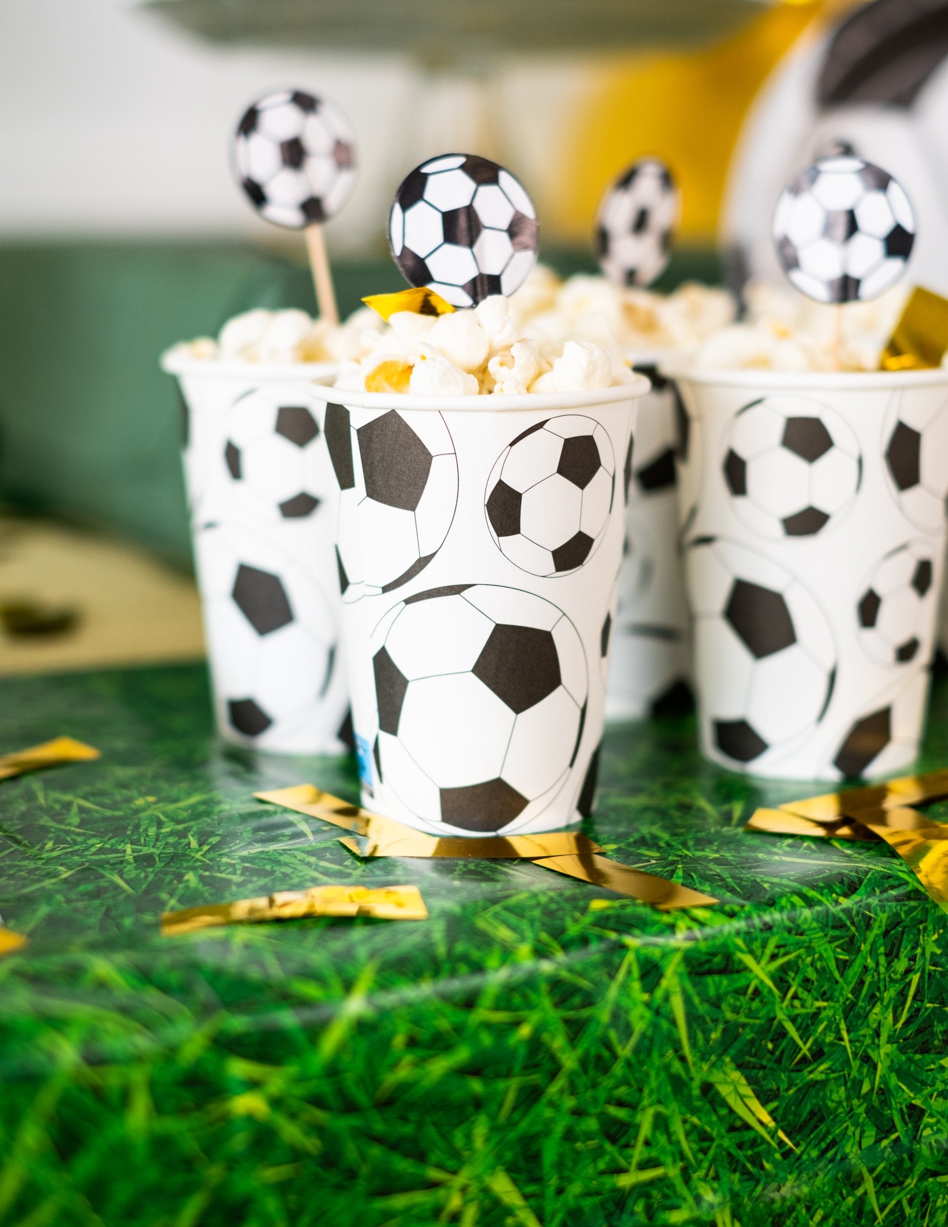 Ez a tétel 10 labdarúgó -poharat tartalmaz. Ezeknek a karton serlegeknek a kapacitása körülbelül 200 ml. Ezek a labdarúgó serlegek tökéletesek lesznek az asztal dekorációjának befejezéséhez a gyermek születésnapján a futball témáján.