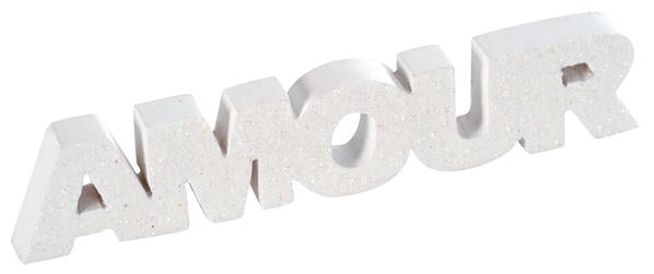 Fehér, csillogós, fából készült szerelmes szó 2,5 x 12 cm esküvőre