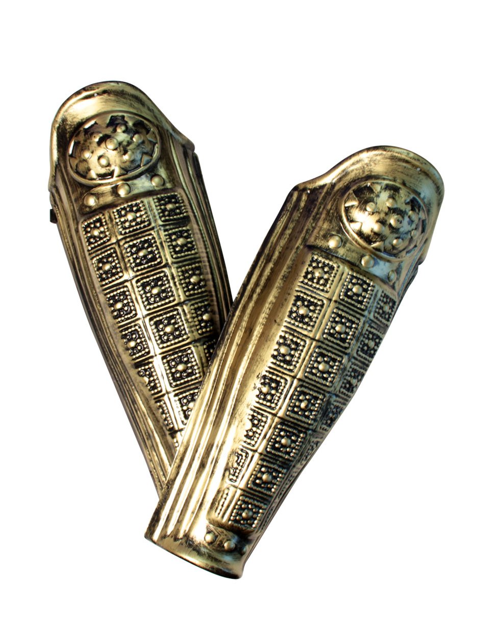 Keresse meg a gladiátor szellemet ezekkel a lábvédelemmel! Ezek a nagyon könnyű műanyag védelem, amelyet arany és fekete színűre festettek, minden gladiátor, romain vagy más spártai ruhát szublimálnak. Szalagokkal rögzítik a hatékony ruhák védelmének felső és alján. Körülbelül 43 cm hosszúak. Merüljön el most az arénába!