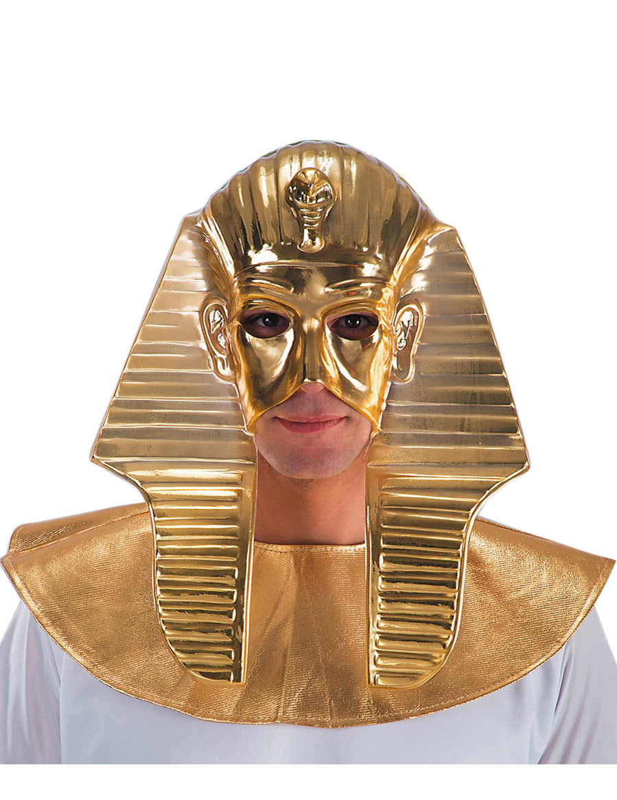 Ez a felnőtt maszk műanyag, és a fáraó frizuráját képviseli (ruha és gallér nem tartalmazza). Aranyos színű, és fekete rugalmassággal fog tartani. Körülbelül 40 cm magas és 35 cm széles mérete, és csak a felső felületet takarja. A szemszinten lévő lyukak lehetővé teszik, hogy könnyen láthassa. Tökéletes lesz a Halloween, a karnevál vagy az álcázott estére való álcázása.