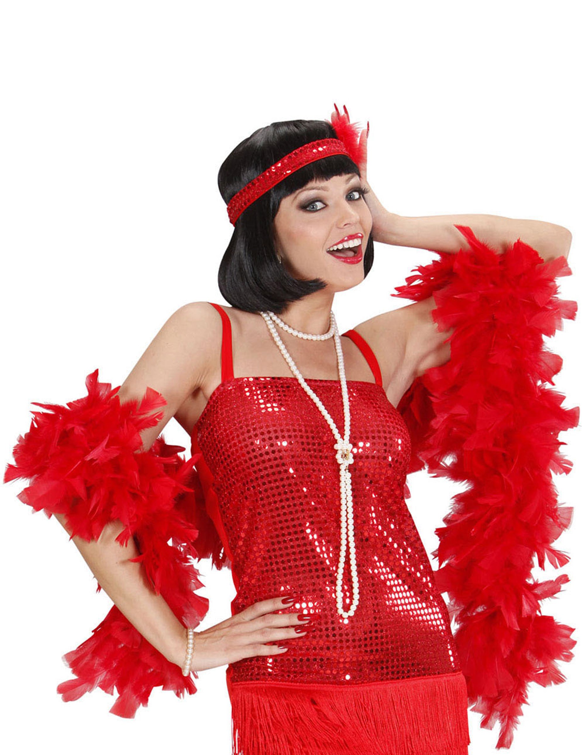 Ez a felnőttek piros tollában lévő boa körülbelül 180 cm hosszúságú. Ez az összes kabaré vagy Charleston jelmezét tökéletesen befejezi a barátokkal vagy a karnevál alkalmával álcázott esténként. Copyright Widmann SRL. Copyright Widmann SRL