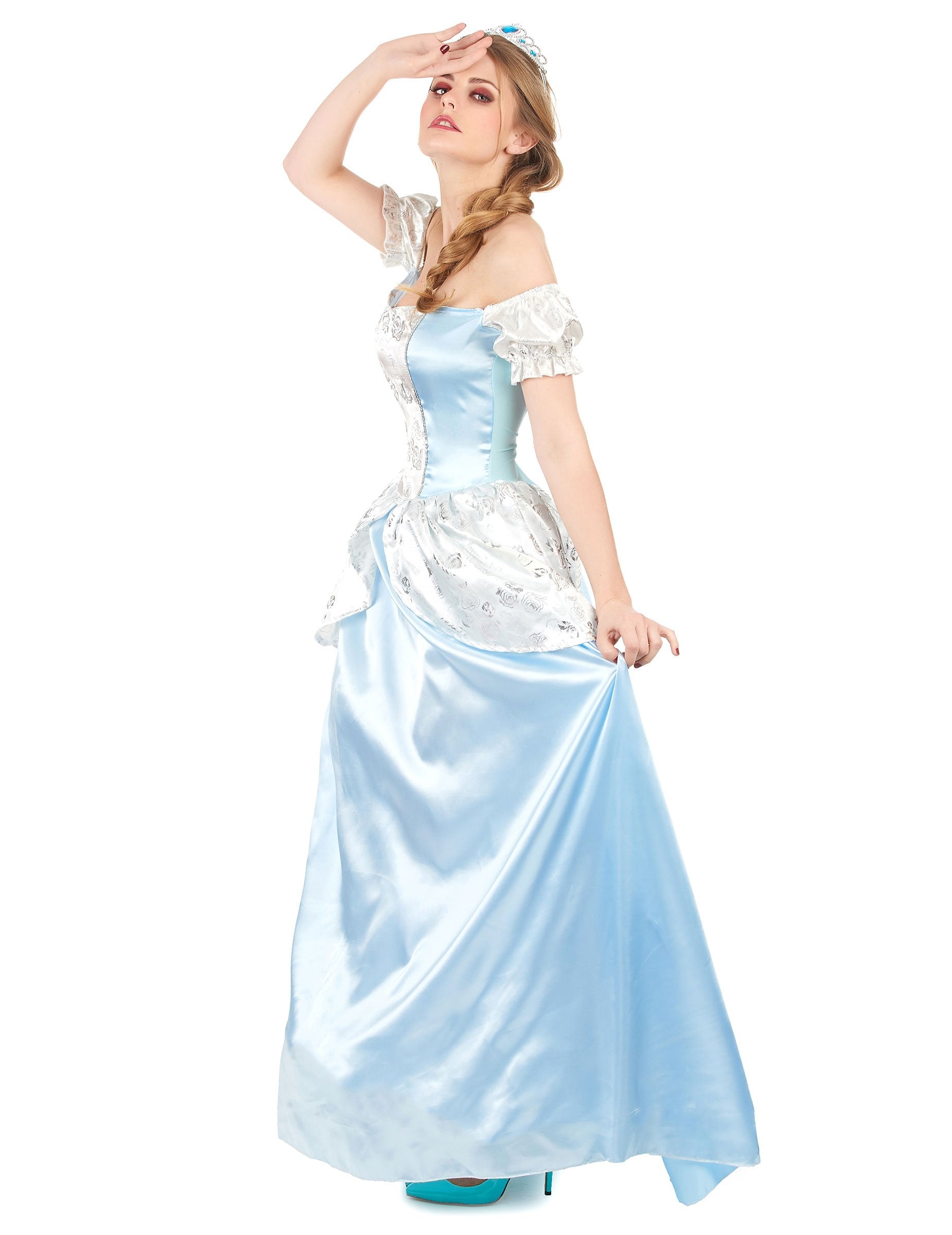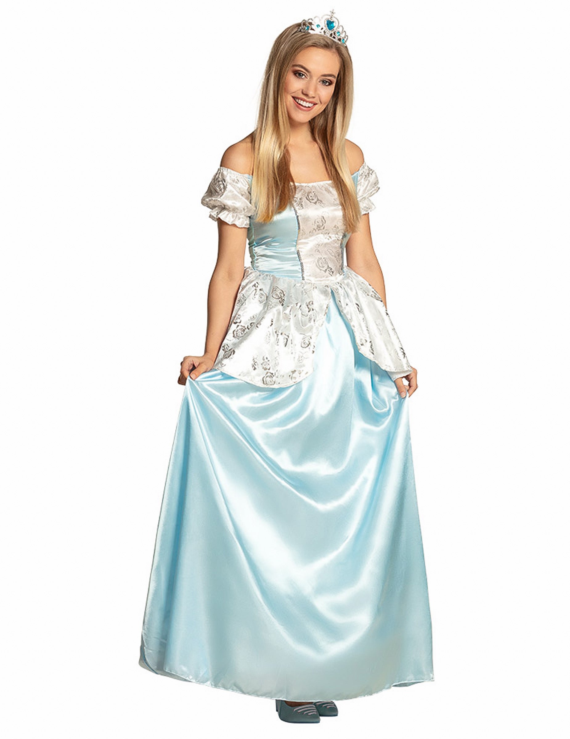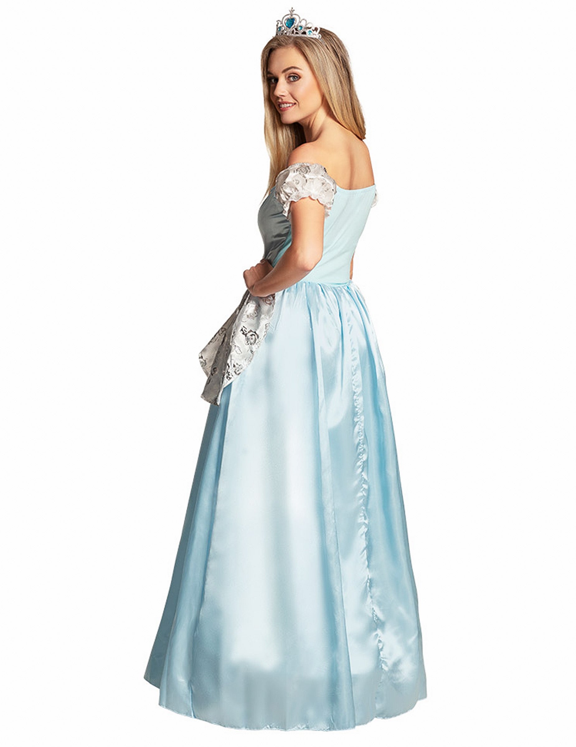 Ez a kék hercegnő jelmez a nők számára egy ruhából áll (cipő nem tartozik). A hosszú ruha égkék. A szatén anyag díszítve van, virágmintákkal, az ujjakkal, a mellszoborral és a méretével. Az ezüst flitterek ragyognak a mellszobra. A nagyobb kényelem érdekében az ujjak és a méret rugalmas. A tiara ezüst hamis kék drágakövekkel. A műanyagban tökéletesen díszíti bármely frizuráját. A karika fehér alsónadrágja szintén van jelen. Ez lehetővé teszi, hogy minden alakját és hangerejét a ruhához adja. Ez a jelmez tökéletes lesz egy csodálatos mese hercegnő megtestesítésére egy barátokkal vagy karneválra álcázott partira.