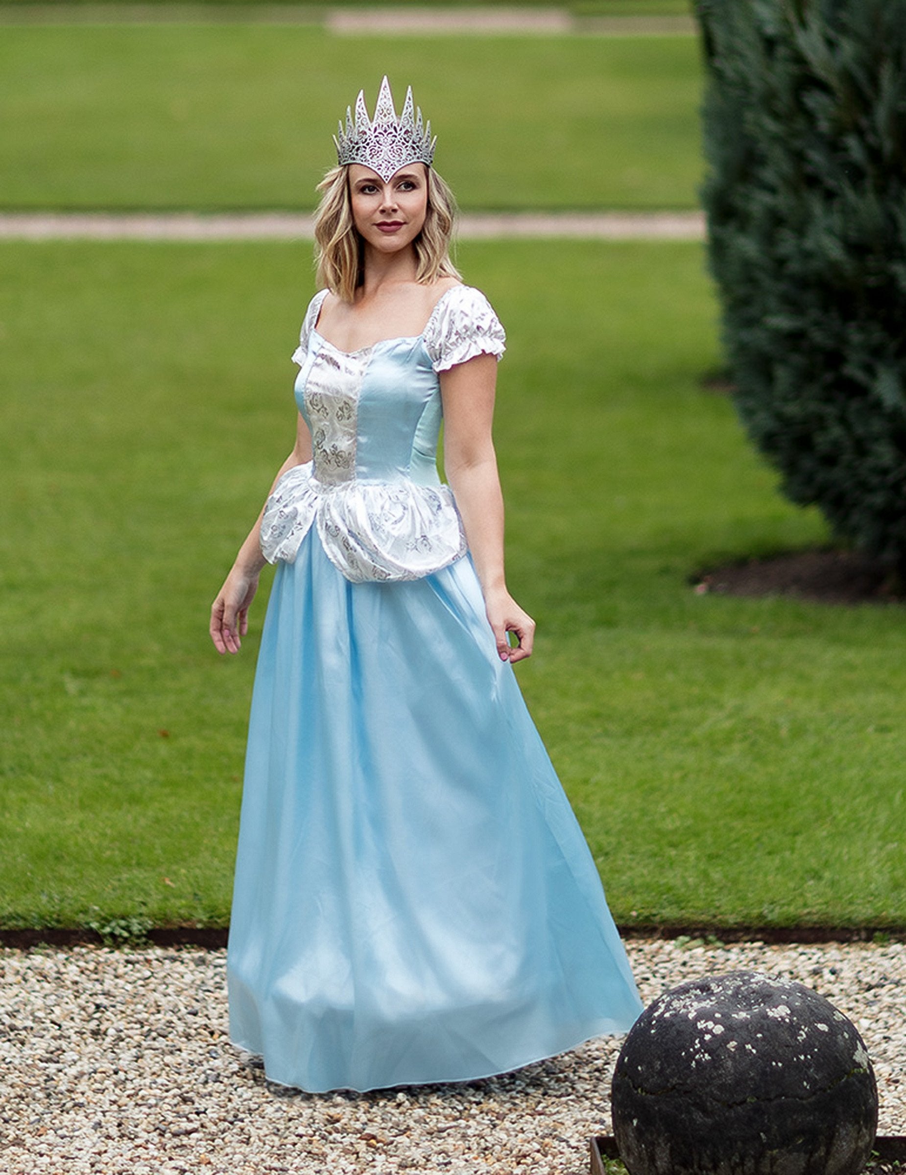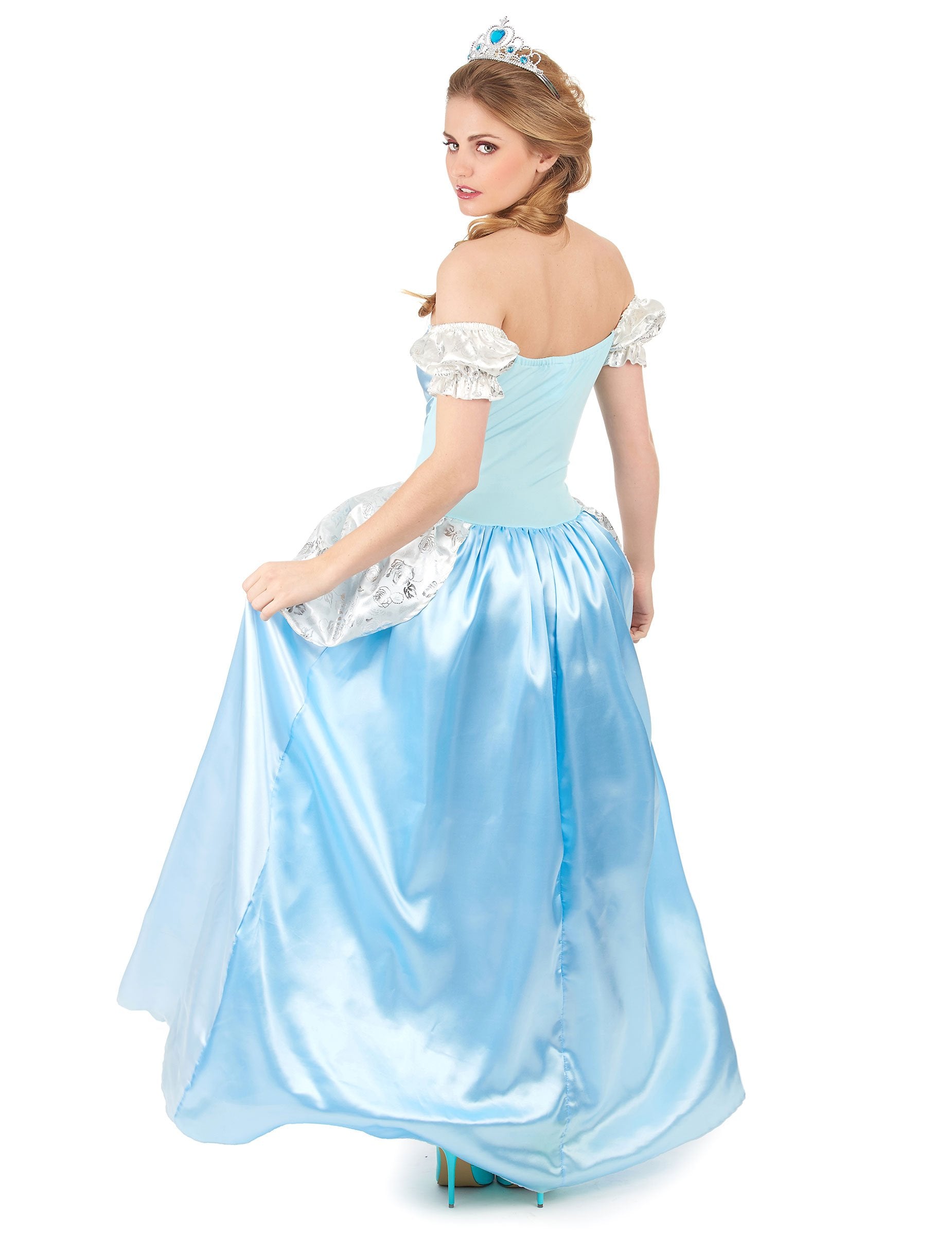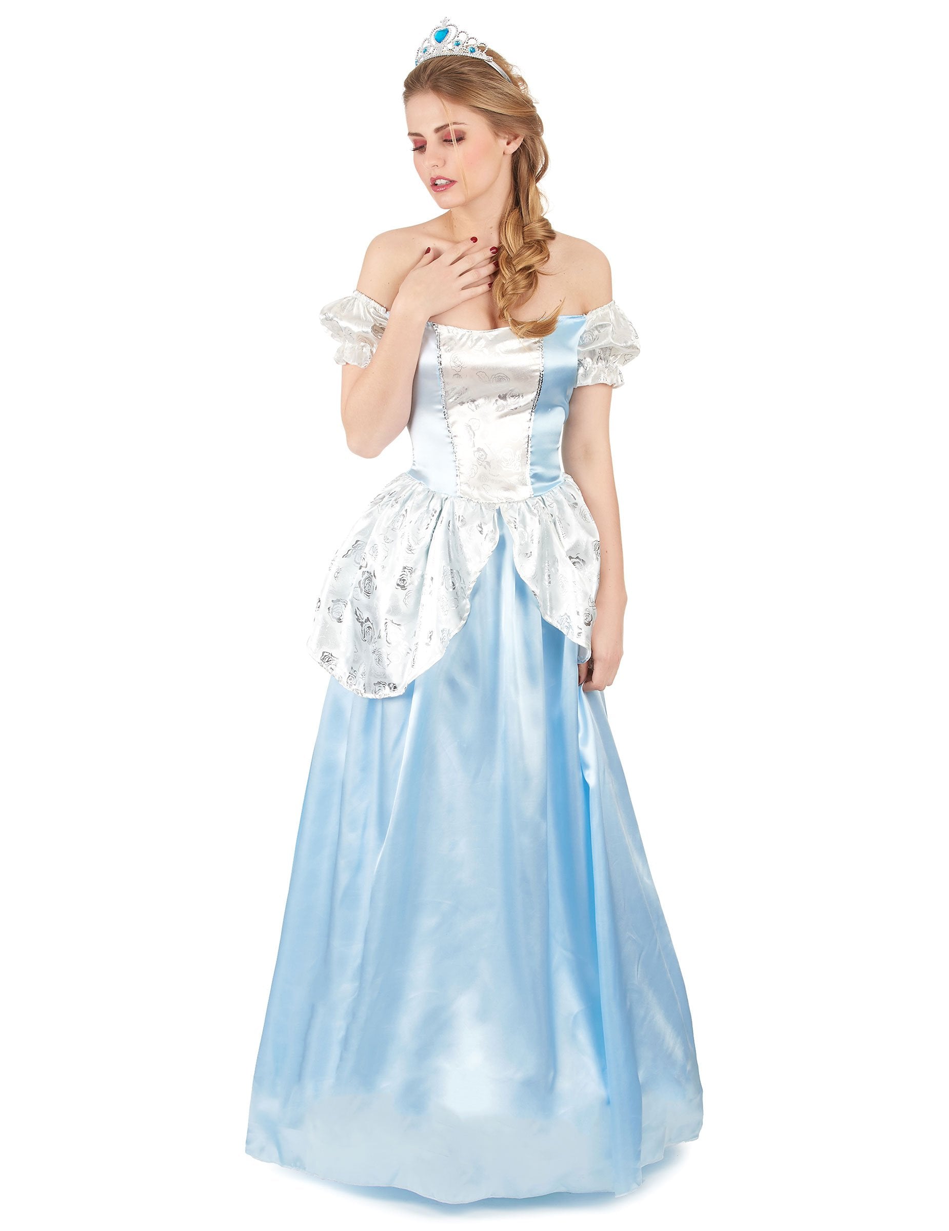 Ez a kék hercegnő jelmez a nők számára egy ruhából áll (cipő nem tartozik). A hosszú ruha égkék. A szatén anyag díszítve van, virágmintákkal, az ujjakkal, a mellszoborral és a méretével. Az ezüst flitterek ragyognak a mellszobra. A nagyobb kényelem érdekében az ujjak és a méret rugalmas. A tiara ezüst hamis kék drágakövekkel. A műanyagban tökéletesen díszíti bármely frizuráját. A karika fehér alsónadrágja szintén van jelen. Ez lehetővé teszi, hogy minden alakját és hangerejét a ruhához adja. Ez a jelmez tökéletes lesz egy csodálatos mese hercegnő megtestesítésére egy barátokkal vagy karneválra álcázott partira.