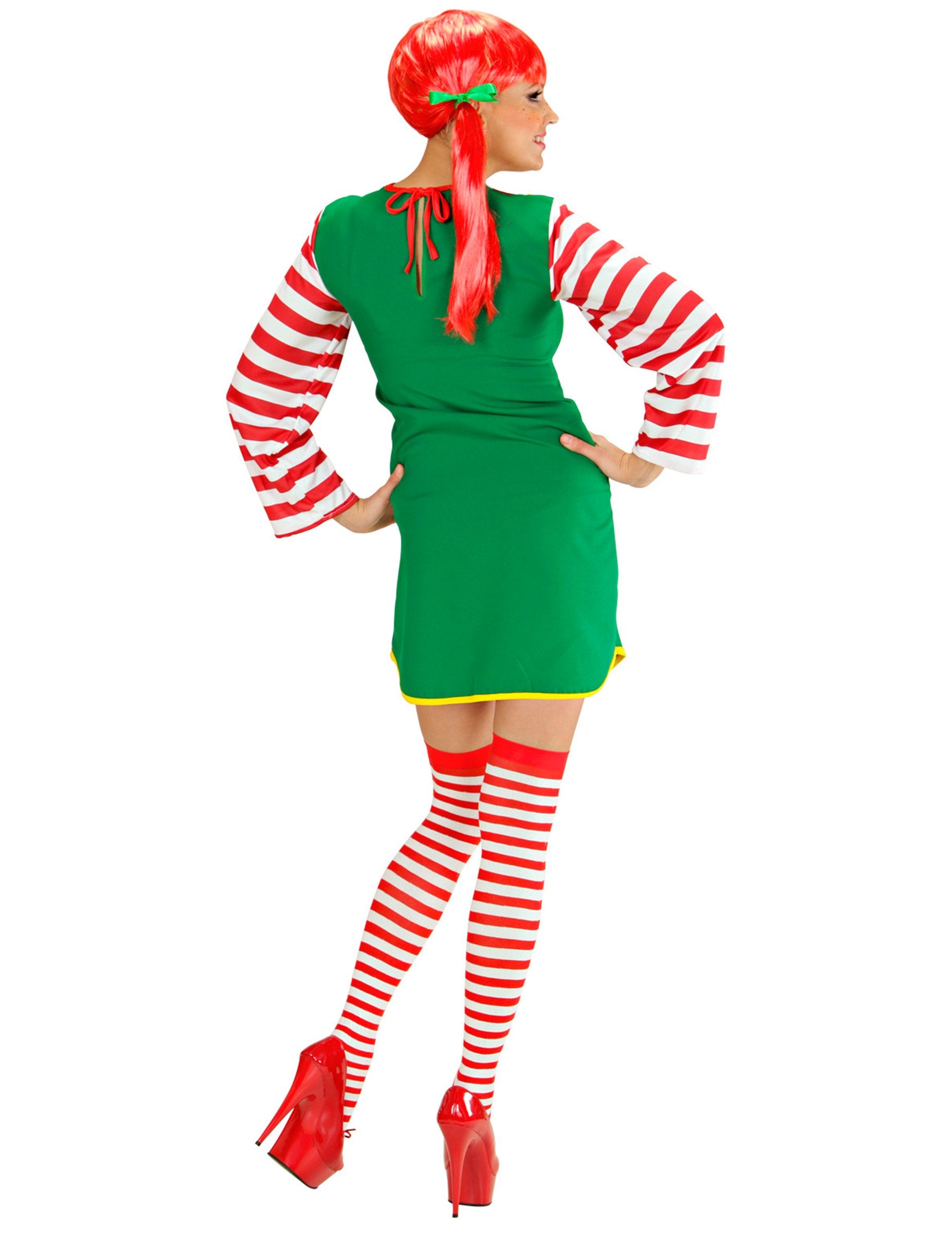 Ez a vöröshajú kislány jelmez felnőtteknek tökéletes választás egy életteli és csintalan hősnő megformálásához. Egy egyedi stílusú rövid ruhából áll, amelyhez zöld kötény tartozik, elöl egy nagy sárga zsebbel.