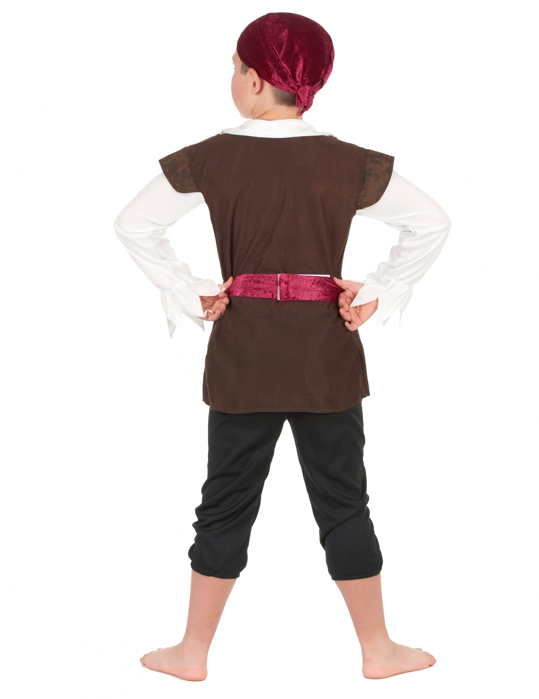 Ez a fiú számára ez a kalóz álrizó egy felső, nadrágból, egy pár sur-bots fejpántból és egy övből áll. (A pisztolyt nem tartozék) A teteje egy hosszú ujjú, fehér pólót képvisel, mellény, tetején barna hüvely nélkül. A nadrág fekete. A jobb támogatás érdekében rugalmas a méret és a boka szempontjából. Egy világos piros öv jelzi a derékot, és karcolással van rögzítve. A vörös bandana befejezi az egészet. Végül, a Sur-Boots vastagbarna filcből készül, és a hátsó részén rugalmas sávokkal rendelkezik. Ez a teljes jelmez tökéletes lesz arra, hogy megváltoztatja Önt a Corsair of the Seas -ban egy partira, amely a kalózok vagy a karnevál témájáról szól.