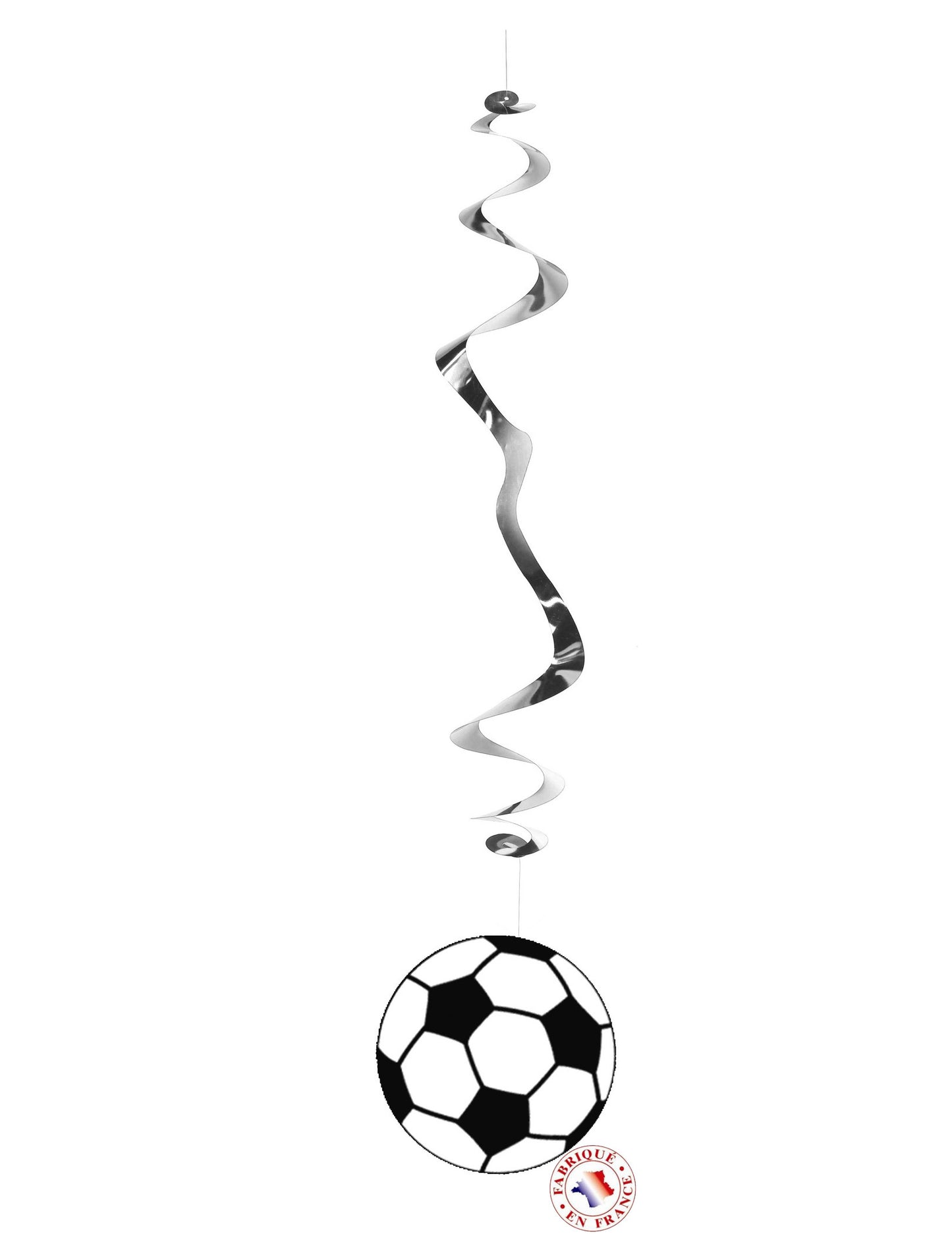 Ez a tétel 6 spirális labdarúgó -felfüggesztésből áll. Mindegyik felfüggesztés egy fémes fekete spirál, amelyet egy 17 cm átmérőjű karton matrica kísér, amely egy futballgolyót képvisel. Mindegyik 80 cm magas. Ezek a dekorációk tökéletesek lesznek a születésnapi dekoráció elkészítéséhez vagy a világkupán egy esténként.