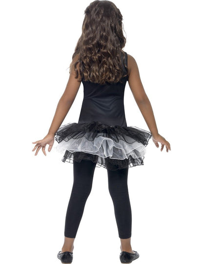 Ez a csontváz jelmez a lány számára ruhából áll (harisnyanadrág és cipő nem tartozik). Az ujjatlan ruha fekete. A ruha elejére egy fehér csontváz nyomtatva van. A ruha alja tutu. Különböző fekete -fehér fodrokból áll, amelyek az egésznek mennyiséget adnak. Ez a jelmez tökéletes lesz ahhoz, hogy imádnivaló kis csontváz legyen Halloween alkalmával.