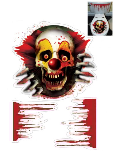 Ez a öntapadós dekoráció felragasztható a WC ülőkéjére, hogy úgy tűnjön, mintha egy gonosz bohóc próbálna kijutni onnan.