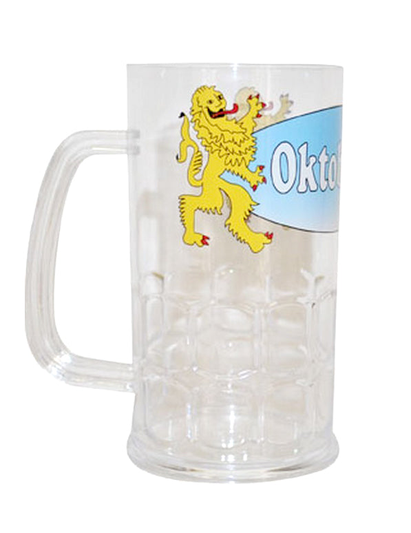 Ez a műanyag üveg 14 cm. Az üveg tetején van egy nyomtatás két sárga oroszlánnal. Az üveg kapacitása körülbelül 50cl. Ez a sörkagyló tökéletes lesz a híres sörfesztivál!