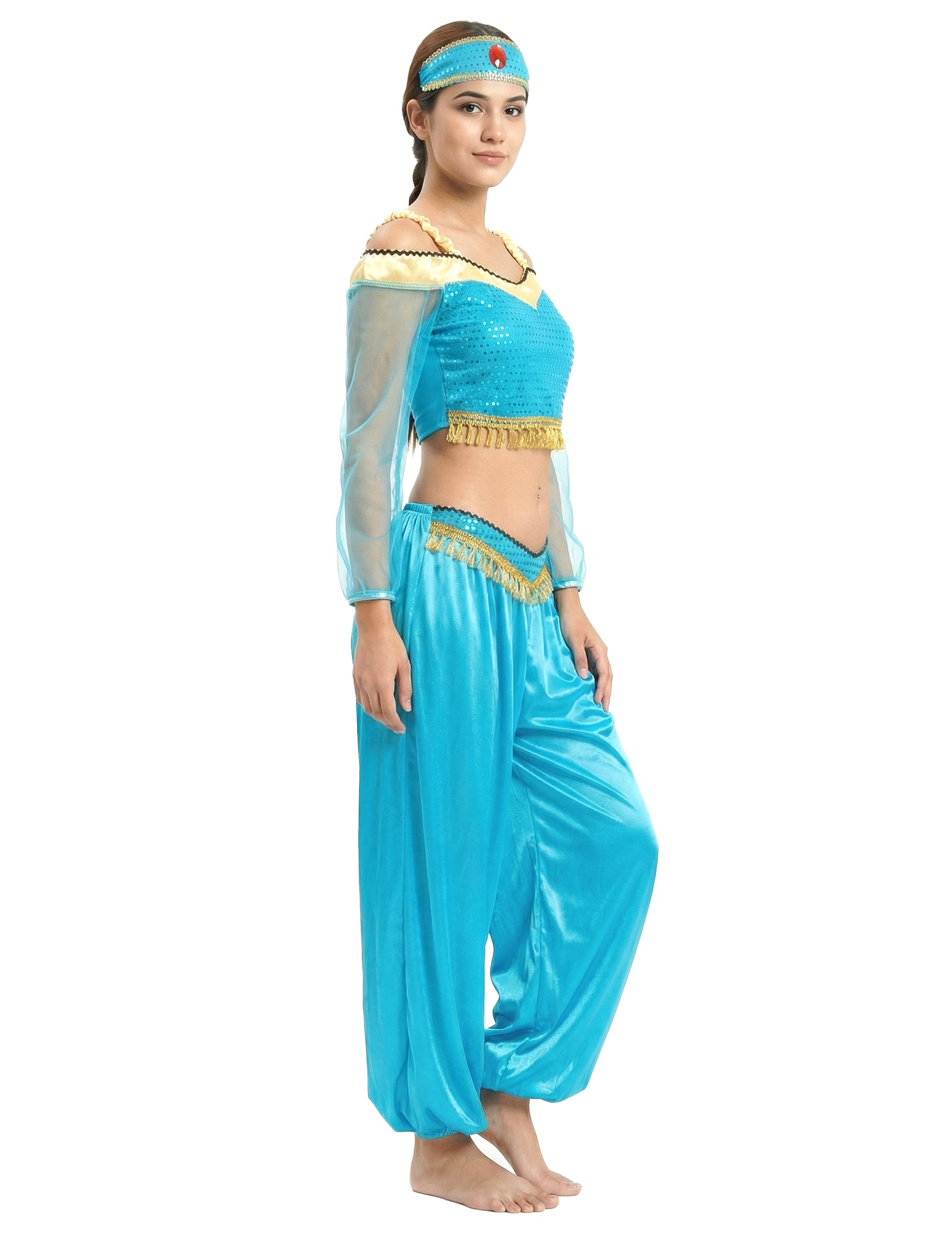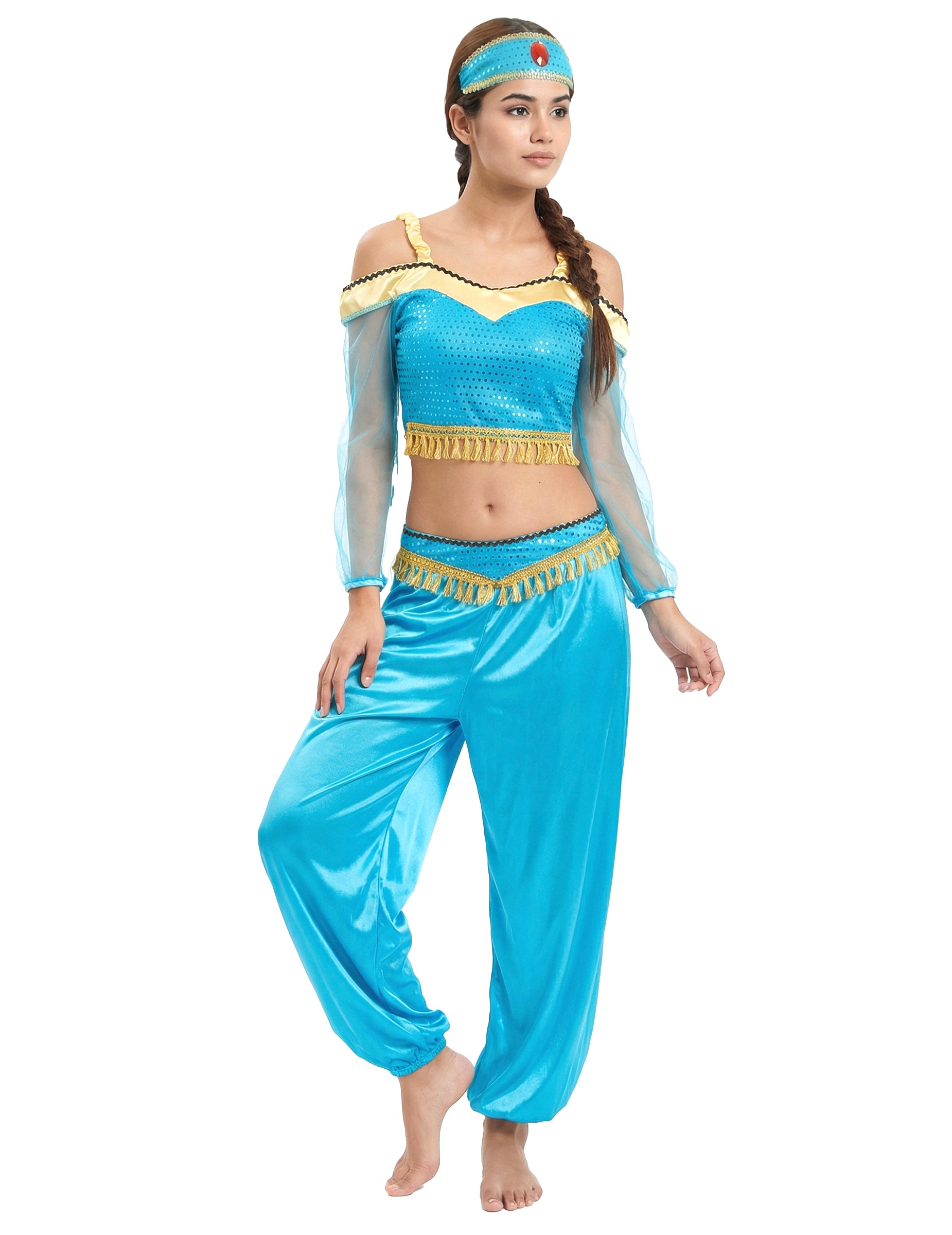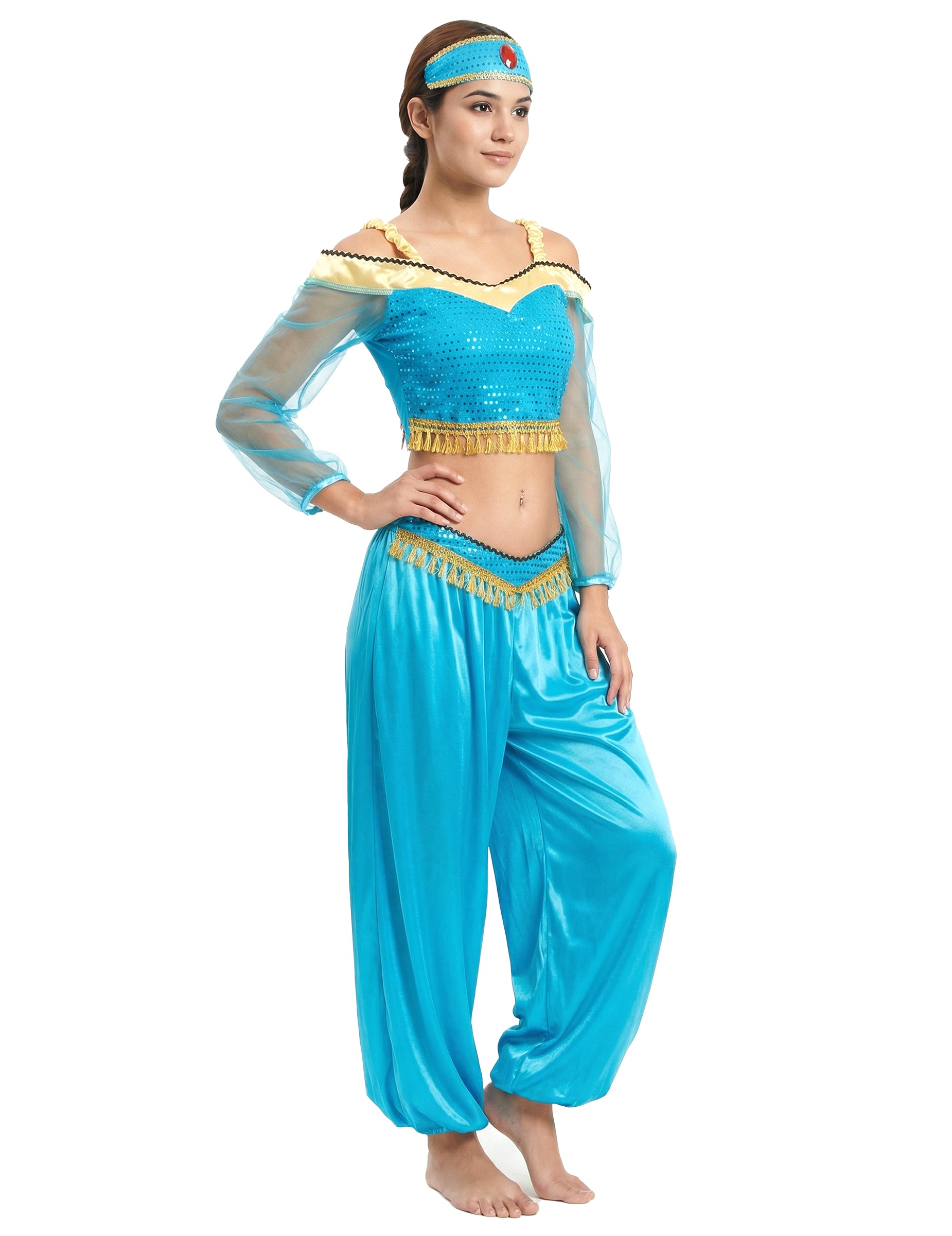 Ez felnőtt jelmez képvisel egy orientális táncosTartalmaz egy felsőt, nadrágot és egy fejpántot (cipő nem tartozék).
