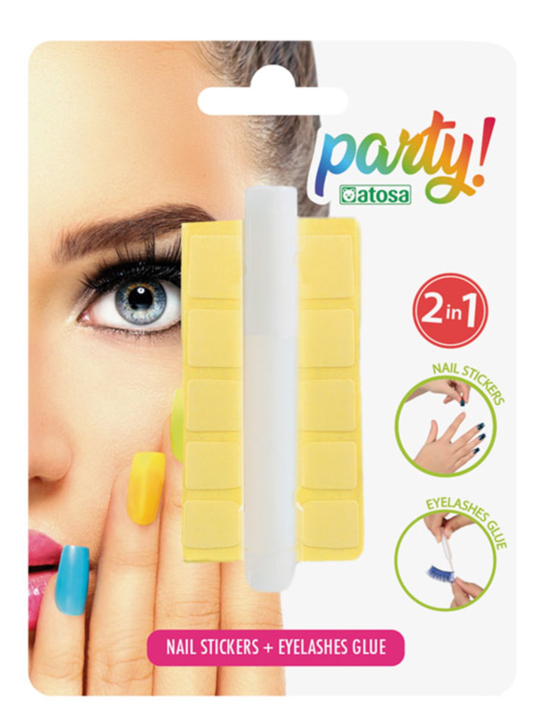 Ez a tétel egy ragasztócsövet (1 ml) tartalmaz hamis szempillákhoz és körömmatricákhoz. A tartalom használatra van biztosítva. A ragasztóval ragaszthatja a hamis szempillákat és matricákat, hogy szépítse a körmét. Tökéletes egy eredeti megjelenéshez egy álruhás estén vagy bármilyen más ünnepi rendezvényen.