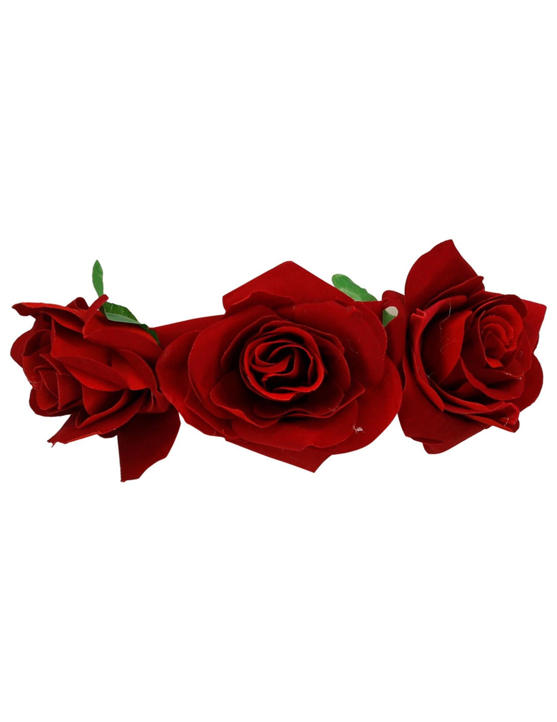 Ez a virágfejpánt felnőtteknek szól. Műanyagban ezt a fekete fejpántot három nagy virág díszíti. Ezek a nagy rózsák vörösek, és színt hoznak a csontváz ruhájába. Adjon ingyenesen a képzeletét, hogy felszerelje ruháit a Holt fesztivál napján.