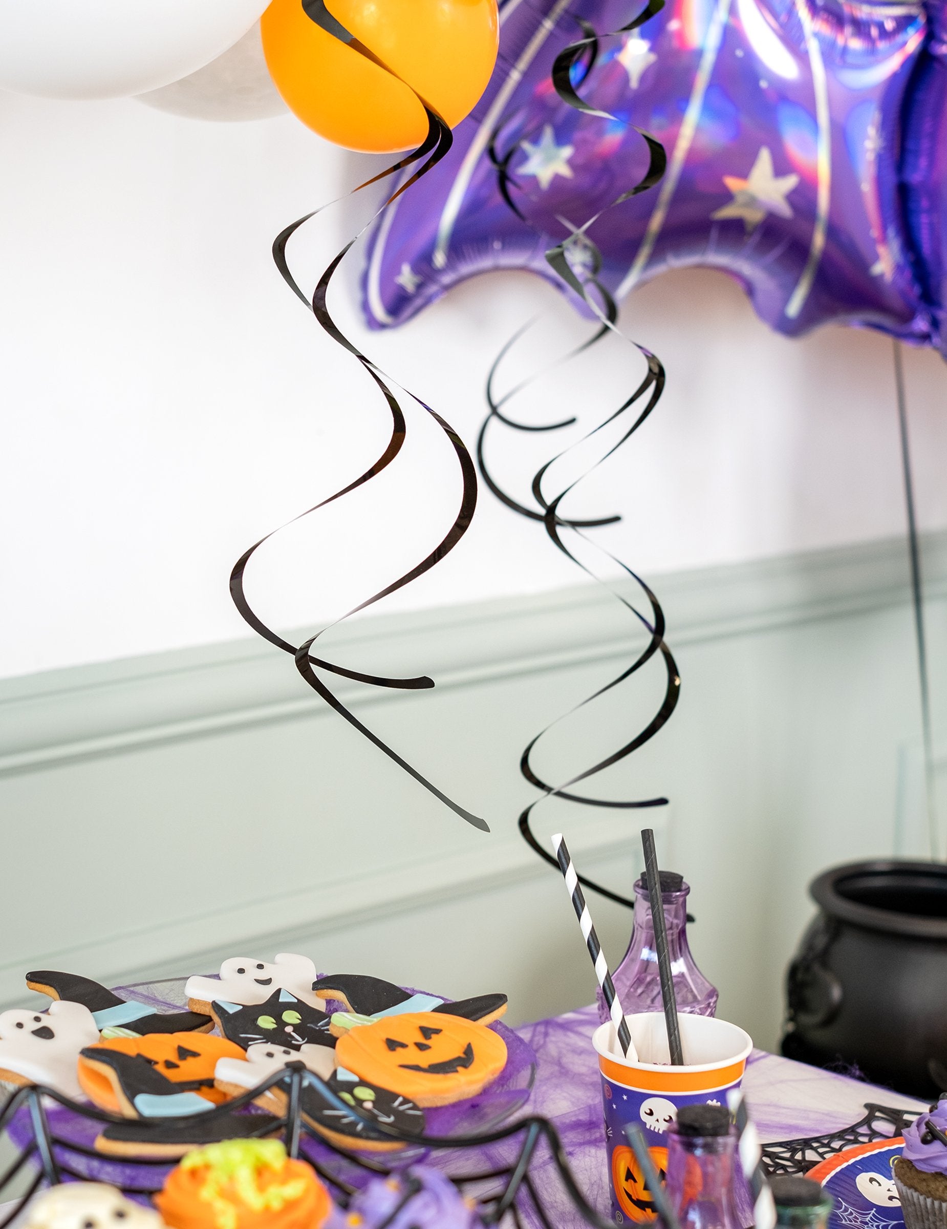 Ez a 8 felfüggesztés műanyagból készül. Ezek fekete spirálok, kb. 66 cm hosszúak. Fémes hatást gyakorolnak. Tegye le ezeket a dekorációkat, hogy a mennyezeten lógjon, hogy garantált hatás legyen a Halloween partiján. Egyedi márkázási party
