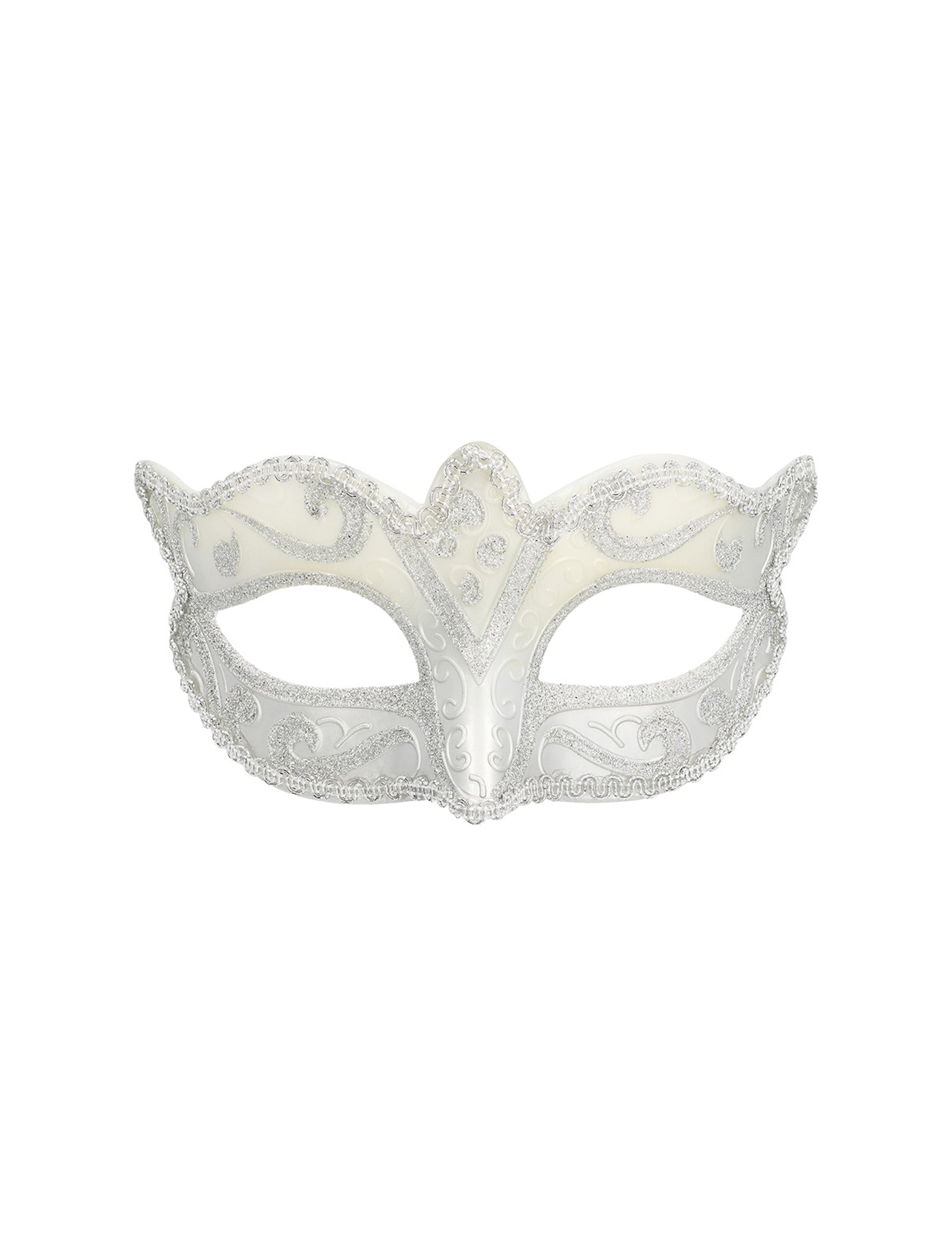 Ez a velencei farkas felnőtteknek ezüst színű. Műanyagban csillogó arabesques díszíti. Ez a farkas fehér linkek segítségével könnyen megköthető a fejedhez. Ez a farkas tökéletes lesz a maszkolt és szexi estéidhez.