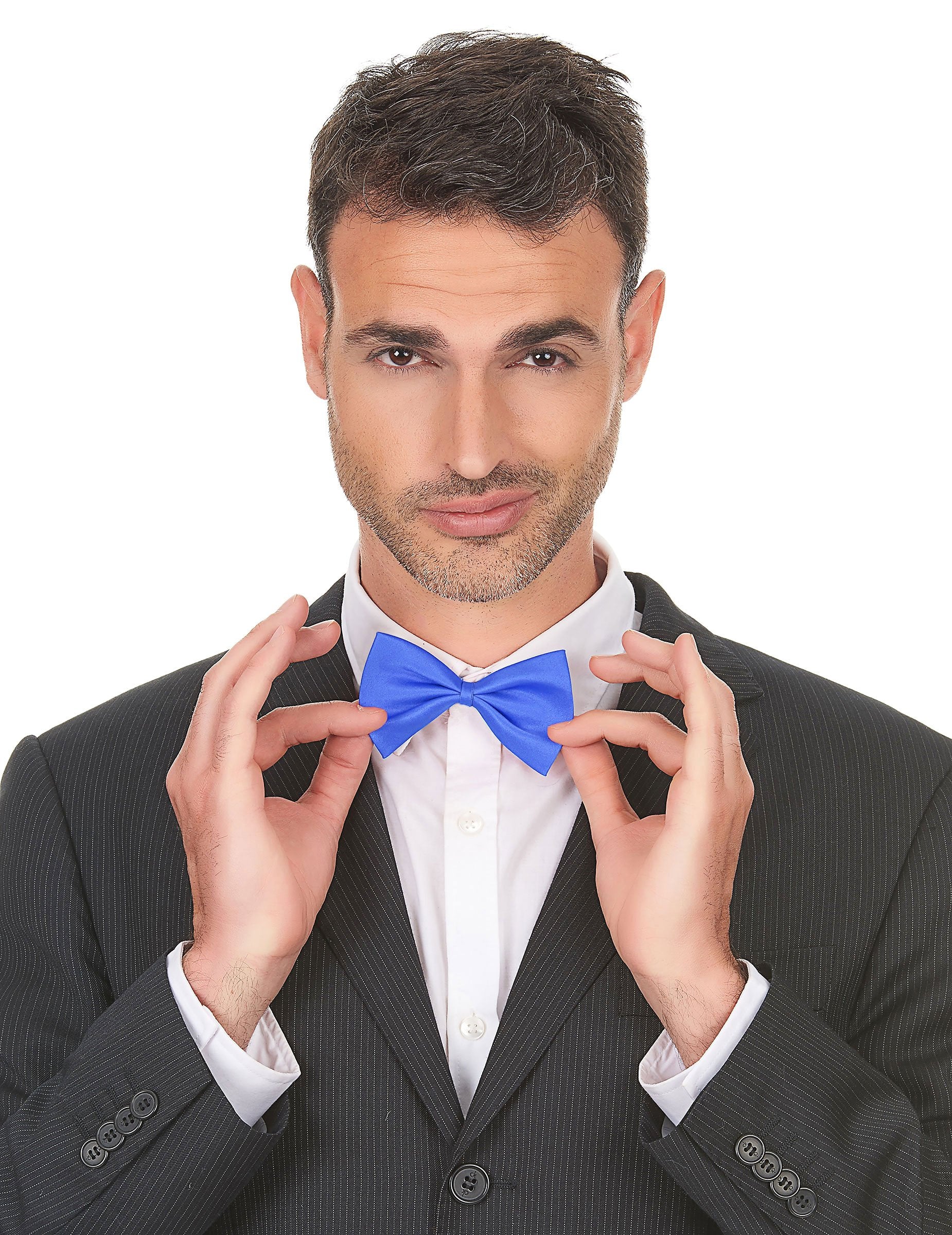 Ez a felnőtt jelmez -kiegészítő egy poliészter csokornyakkendő. Egy gyönyörű sötétkékből ez a csokornyakkék 11 x 7 cm -re mér. A fekete elasztikusnak köszönhetően a nyak körül viselhető. Adjon egy kis királyi színt az ingednek egy parti parti alatt.
