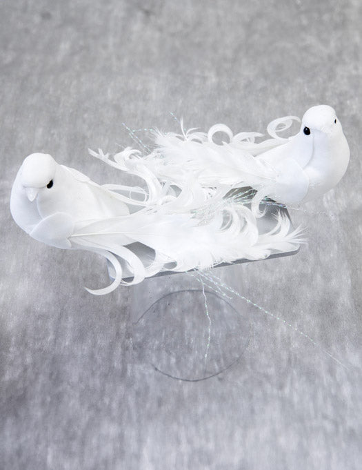 Ez a csomag 2 díszmadarat tartalmaz, amelyek poliészterből készültek. Mindegyik figura körülbelül 13 cm méretű, és tiszta fehér színű. Ezek a figurák selymes tollakkal, apró sötét szemekkel és sárga lábakkal rendelkeznek.